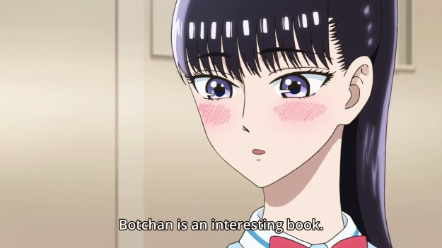 — I was hoping they’d start talking in-depth about Botchan, but the conversation never really goes anywhere. She then asks about his book, and he reveals that it was written by a “friend.” Just a friend, I’m sure. But she finds it remarkable that he even personally knows an author: “You’re amazing, Mr. Kondo.” I dunno, I find this to be a strange reaction.