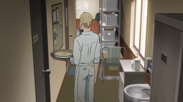 — Dark thoughts swirl in Akira’s head, and she ends up dropping the dessert on the group. On the one hand, it seems a bit silly that Akira would be in such a bad mental state. Kondo didn’t scream at her nor did he say anything all that harsh (in my opinion). Plus, he has a cold. Yeah, his mood has been in a funk lately, but enough to send the girl into a tailspin? On the other hand, she took this job and fell in love with Kondo to help her cope with the loss of track and field. Kondo is her emotional crutch at the moment, and without him, we’re seeing a girl who has yet to really come to terms with her devastating injury. So from this point of view, Akira’s terrible reaction slowly starts to make sense.