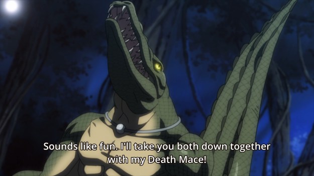 — This oh-so-threatening Kido guy is apparently a tree hugger. I can’t wait to see what animal he ends being. I’m hoping sloth. Also, Gorilla Boy is still alive (I forget if I ever gave him a stupid nickname), but of course he is. Who’s actually really dead in this show besides the rapist Solid Snake?