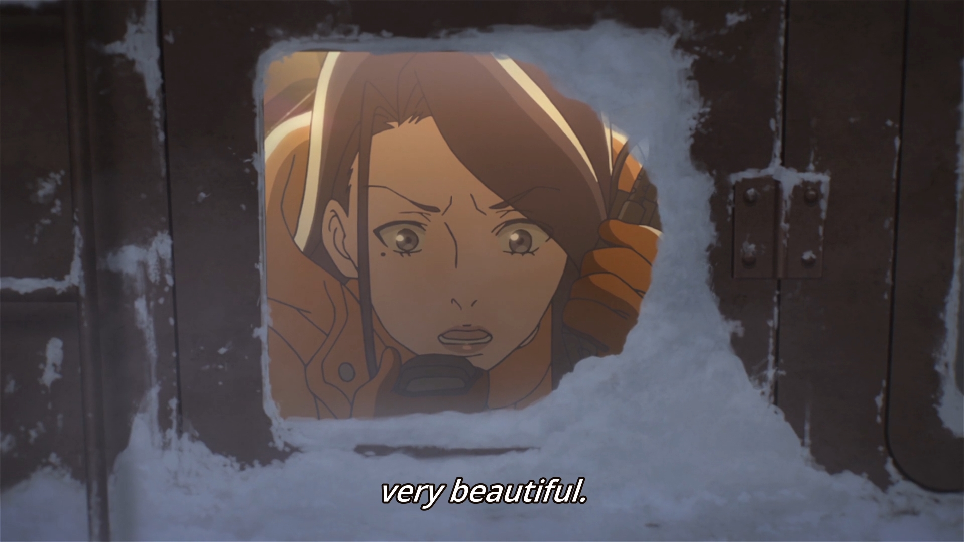 — Another reason why these characters are so likable versus all those other happy-go-lucky, slice-of-life shows: Shirase’s got an edge to her. She doesn’t say some flowery nonsense the moment she steps foot on Antarctica. Nah, she’s telling all her enemies and doubters to suck it. I wonder who she thinks betrayed her.