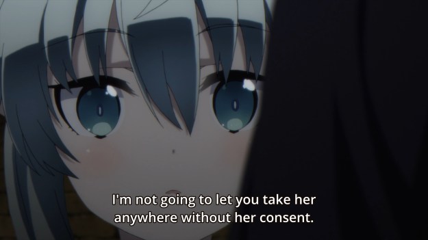— It’s not like I feel any tension in this scene, though. You just know nothing bad will happen to the elf loli. You also know she’ll be rescued eventually. This isn’t a show that breaks genre conventions. There are no serious consequences for our loli collector to ever deal with. Losing Mia is nothing but a temporary setback. It’s this sort of stale writing that plagues every medium in general. I know shows like Death March aren’t exactly allotted a large budget, but you don’t need one in order to tell a decent story. Just Because! looked like absolute trash, but it’s direction and storytelling were still top-notch.