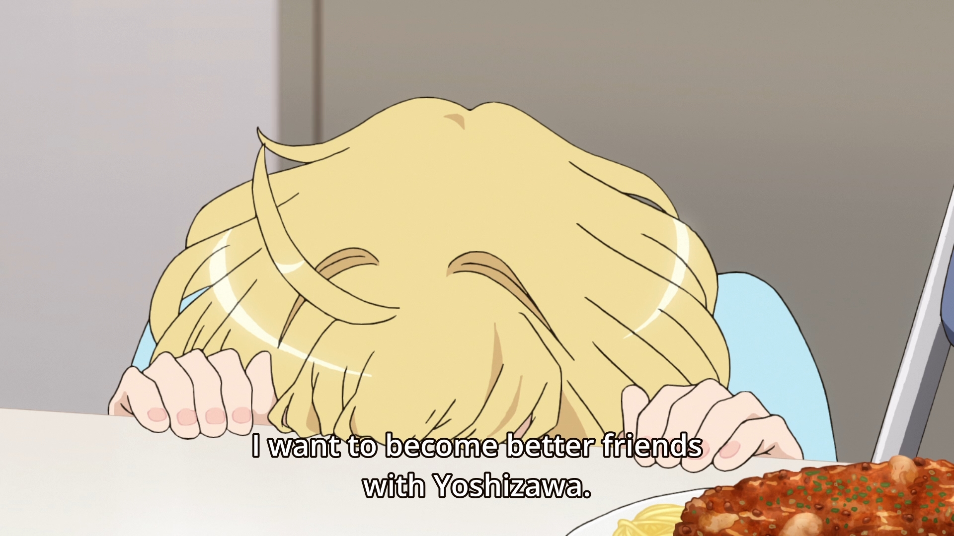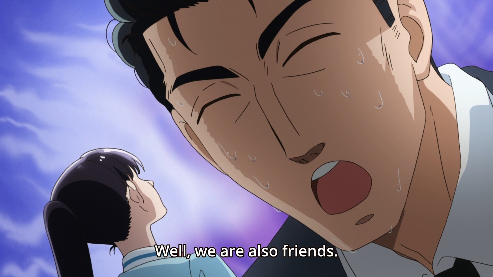 — The happy-go-lucky narration in the cold opening almost makes it feel like we’re watching a sitcom, and it’s evident why: Kondo definitely wants to lay the friendship thing on thick. Maybe he shouldn’t have hugged her in last week’s episode, then. Maybe the 45-year-old man should know better and stop sending the poor girl mixed messages.