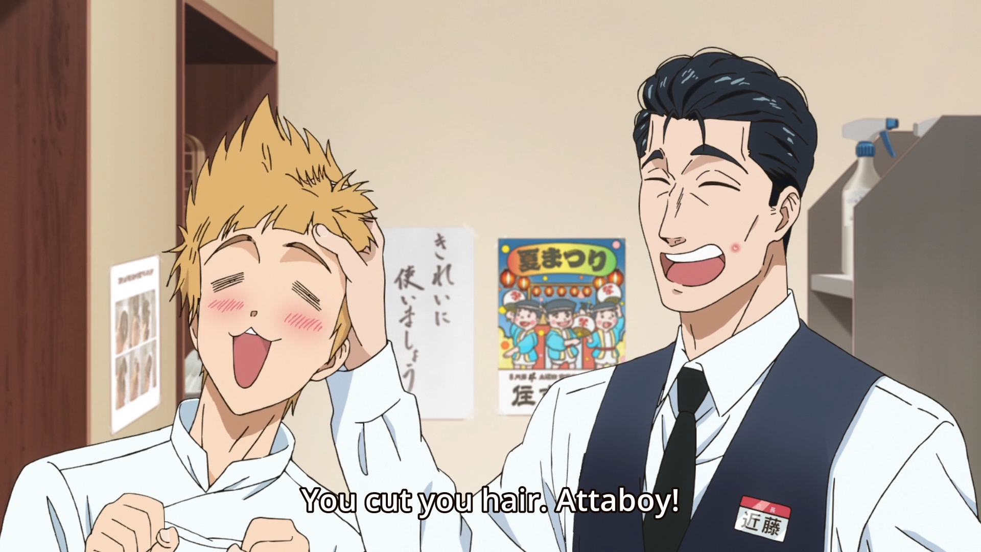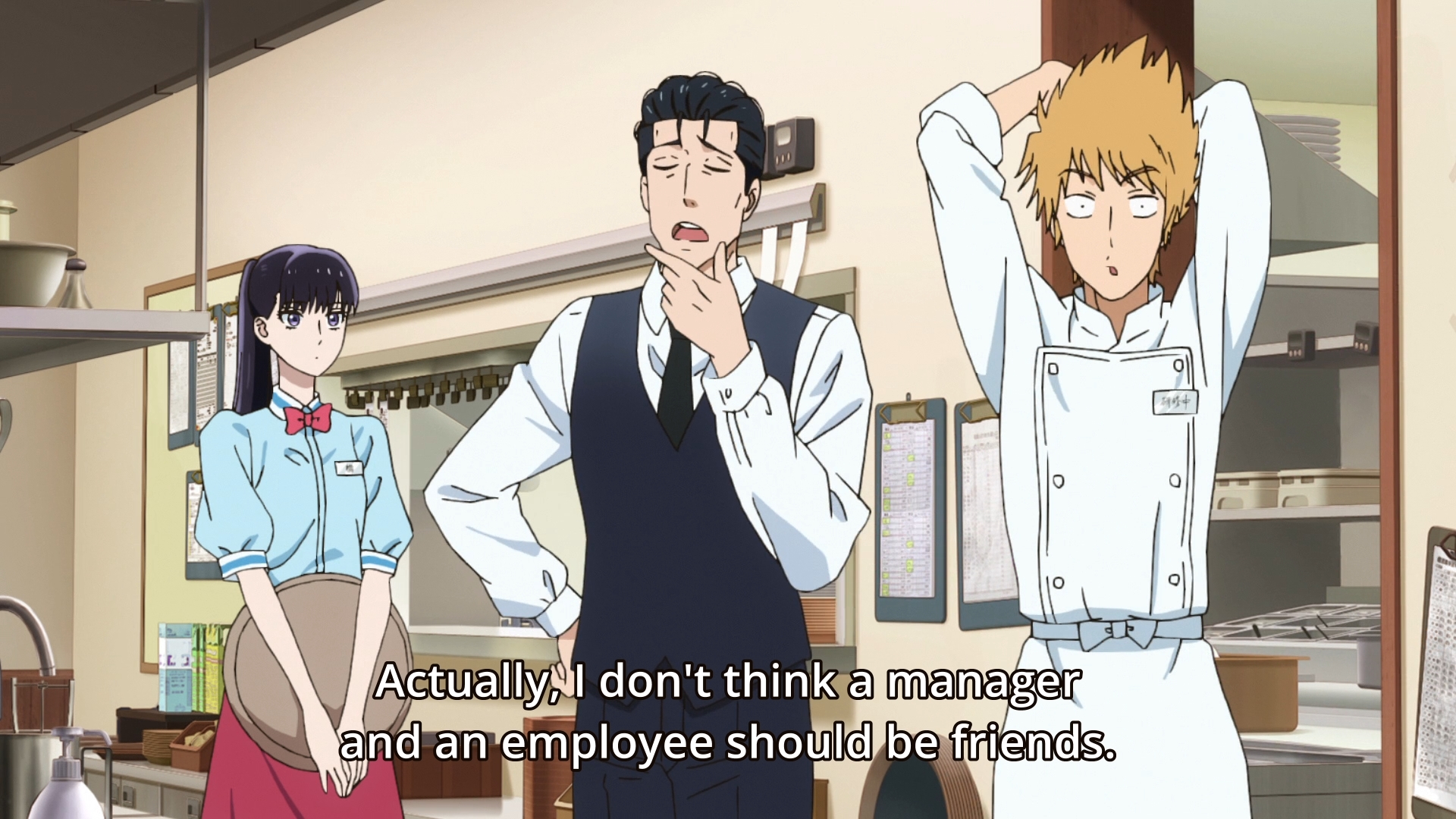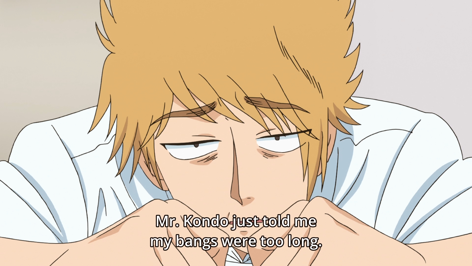 — I dunno, I can’t picture Kondo firing anyone unless they really screw up. He’s obviously just teasing his employee. Besides, Yoshizawa’s bangs aren’t that long.