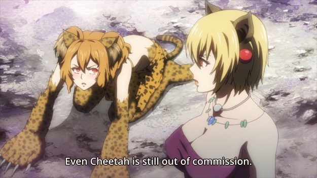 — Chesty Cheetah claims the fight is over, but of course, Honey Badger somehow “dodged” the attack even though she went flying. I guess it’s one of those stupid anime things were she dodged just enough to avoid being knocked out.