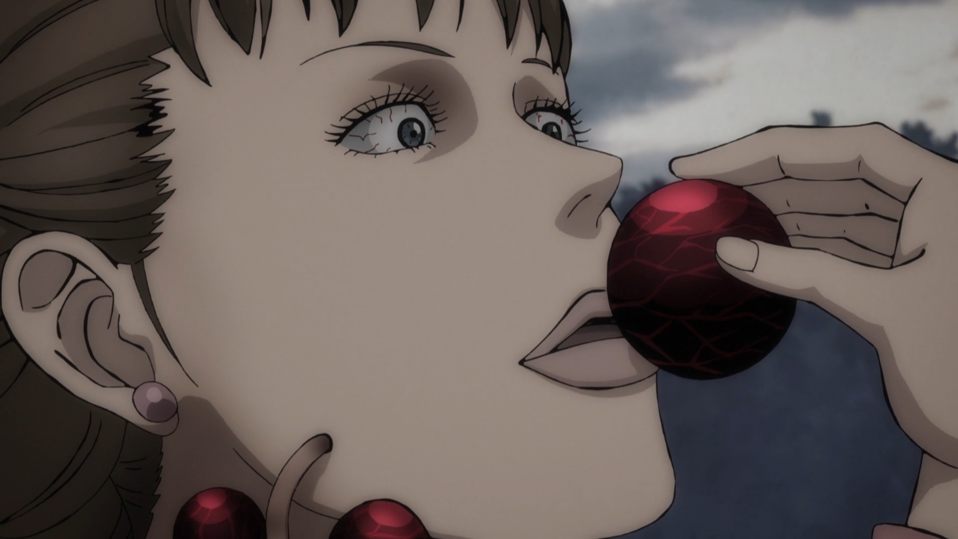 As for the second story, it’s horribly rushed. The adaptation leaves out two major scenes with the vampire kids. First, when the kids attacked Kana and sucked her blood, Anzai had to fight them off. We don’t get to see any of that here. The anime just awkwardly cuts to the couple walking by themselves afterwards. Second, the kids eventually break into the evil guy’s home in order to feast on all his precious blood bubbles. This moment of chaos is what allows Anzai to escape with Kana. Again, this gets left out completely from the adaptation. Why? Your guess is as good as mine. The husk that speaks to Anzai? He’s actually one of the kids’ father. It’s such a pity that this adaptation ends up being such a hack job.