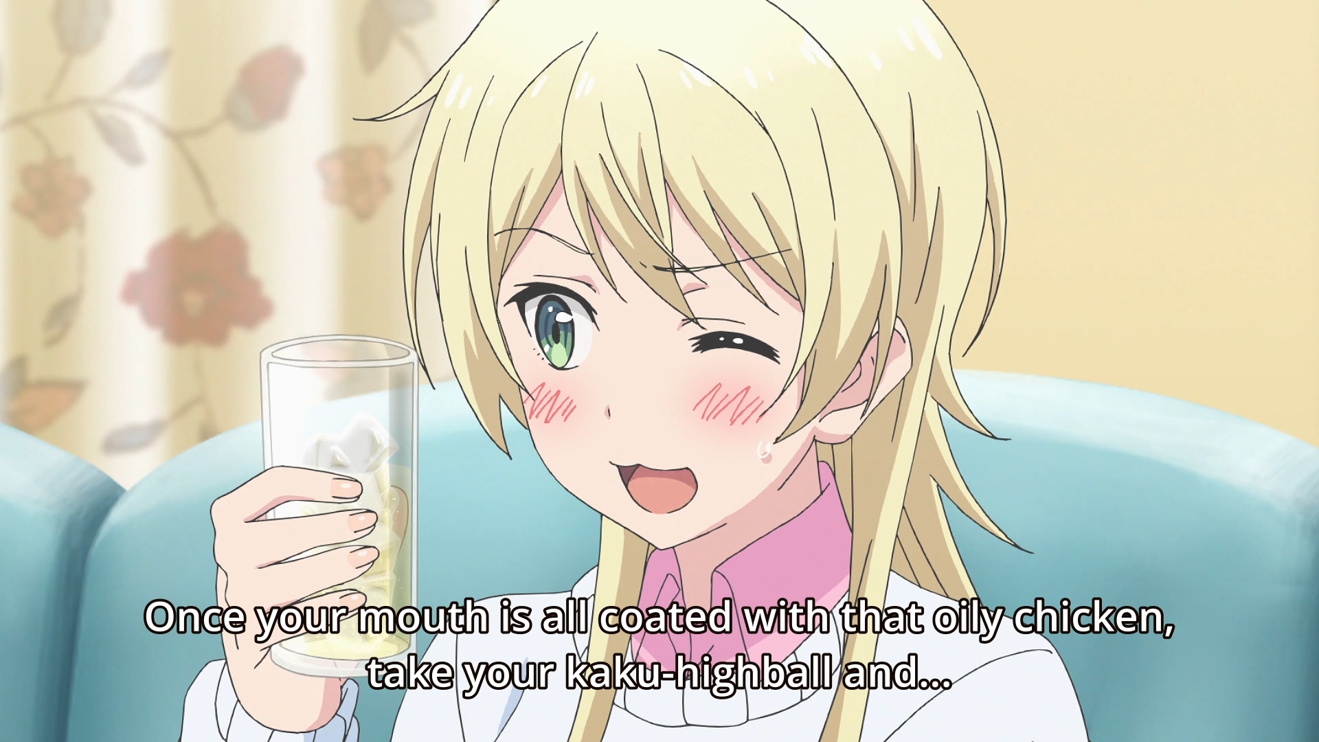 Michiru lands a big contract after a successful presentation, so Nao treats her to a whiskey cocktail that’s mostly soda. She calls it a kaku-highball. My friends enjoy a nasty ginger ale and Jameson combo (a whiskey ginger?), so this is pretty similar. Apparently, this cocktail goes well with chicken karaage. I’m not a whisky drinker, but sadly, all my friends love it. I have one friend who likes taste-testing Japanese whiskey. Luckily for her, San Francisco has plenty of whiskey lounges. Another friend got aged whiskey from her boyfriend as a birthday present. Personally, I don’t get it, but whatever floats their boats.