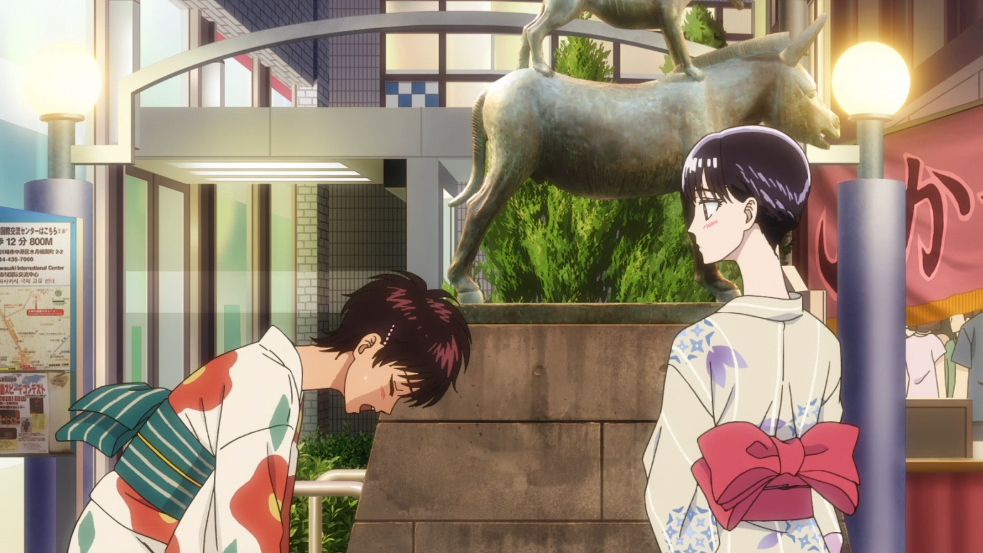 — The normally tomboyish Haruka apologizes for being late, because getting ready took longer than expected. Are girls required to be in a yukata in order to attend one of these festivals or is that just an anime thing?