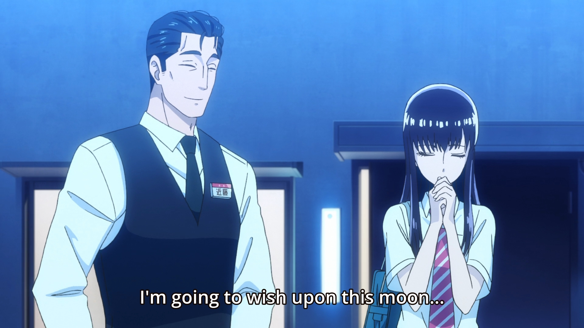 — Kondo points the supermoon out to Akira, because he doesn’t want her to think that her friendship with Haruka is a lost cause. If she truly wants to save it, then she can. He gives her some words of encouragement, and as she clasps her hands together, she hopes that she and Haruka can become closer again. For once, their relationship resembles that of a mentor and his mentee. Hopefully, this will last till the end of the series.