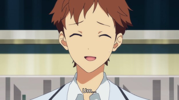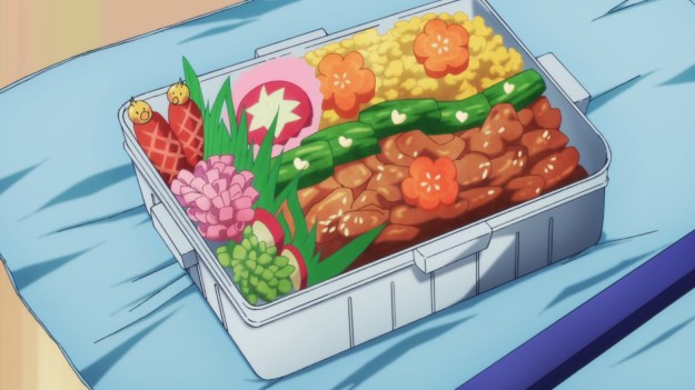 — The girl then fawns over Arato’s bento. She obviously knows it was put together by Lacia. For some reason, however, Arato is trying to conceal this fact from the public. In last week’s episode, he was reluctant to go forward with the boy-meets-girl marketing campaign, because he was afraid people would find it odd. Maybe this is the source of the main character’s anxiety. On the other hand, is it really shocking to hear that an hIE is making lunches for their owner? Wouldn’t this sort of thing be commonplace by now.