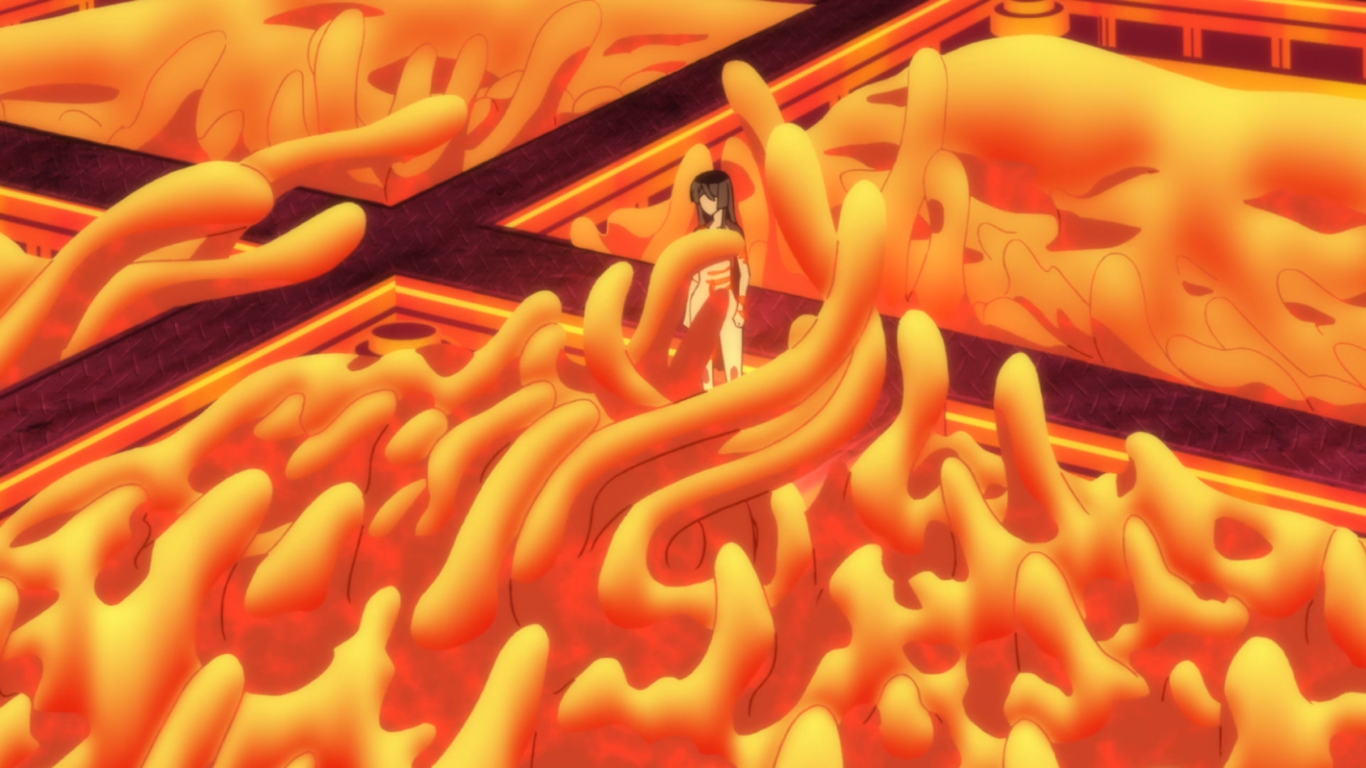 C’mon, this was supposed to be a hype moment, but you can barely see the girl behind all that haze and poor lighting. Anyways, Yukari moves against the academies to root out any potential Mokusa members. She also allows herself to be molested by a bunch of noro: