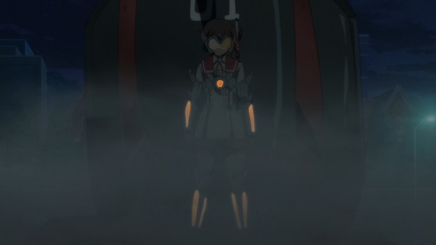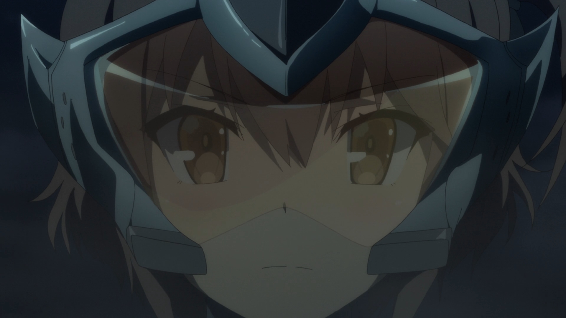Yukari almost looks kinda cool here. But then our heroine finally gets to don those special combat outfits, and the anime completely drops the ball: