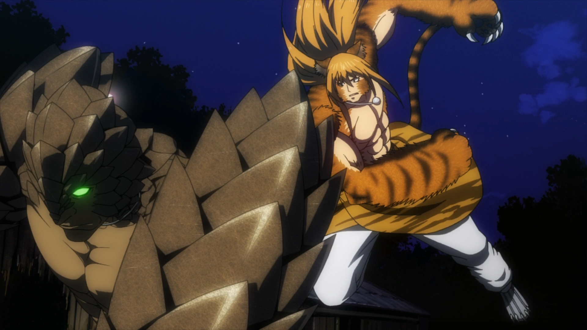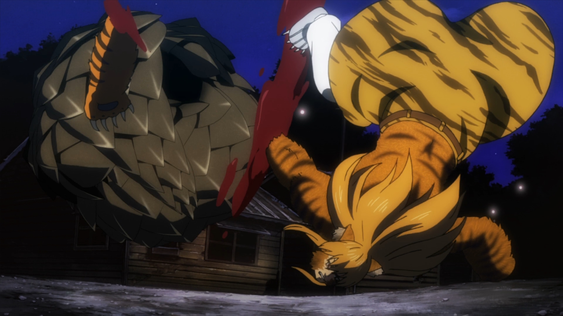 — Hungry Hungry Hippo gets brutally stabbed in the stomach, but this gives Taiga an opening. So what does he do? Does he go for Hippie Pangolin’s supposedly weak belly? Nope, Taiga simply goes for one of his enemy’s eyes. Jesus, you couldn’t even take out both eyes to render him blind.