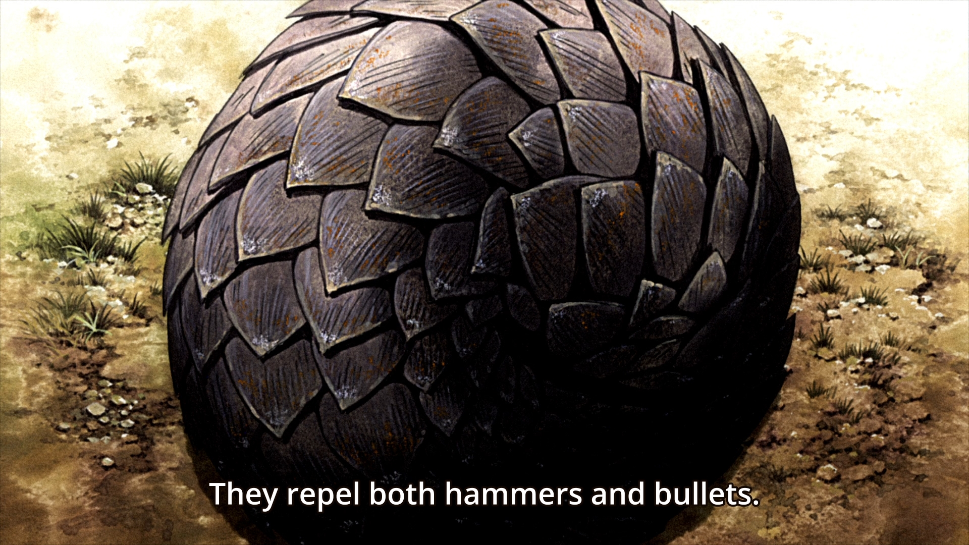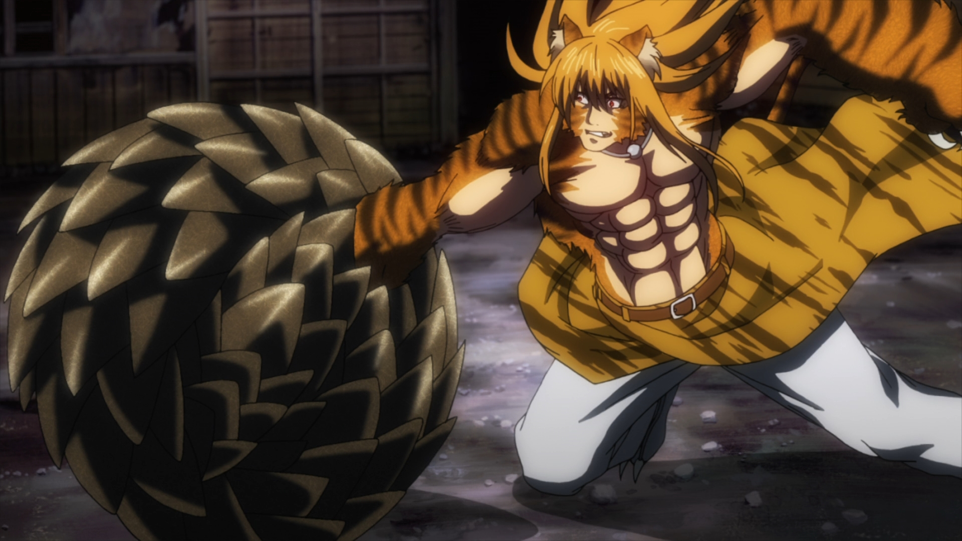 — Taiga thinks he can just knock the pangolin over and aim for its soft belly. Hippie Pangolin immediately counters by curling up into an impenetrable ball. According to the San Diego Zoo’s website, pangolins are prey to leopards, hyenas and pythons. Honestly, they don’t seem all that formidable to me.