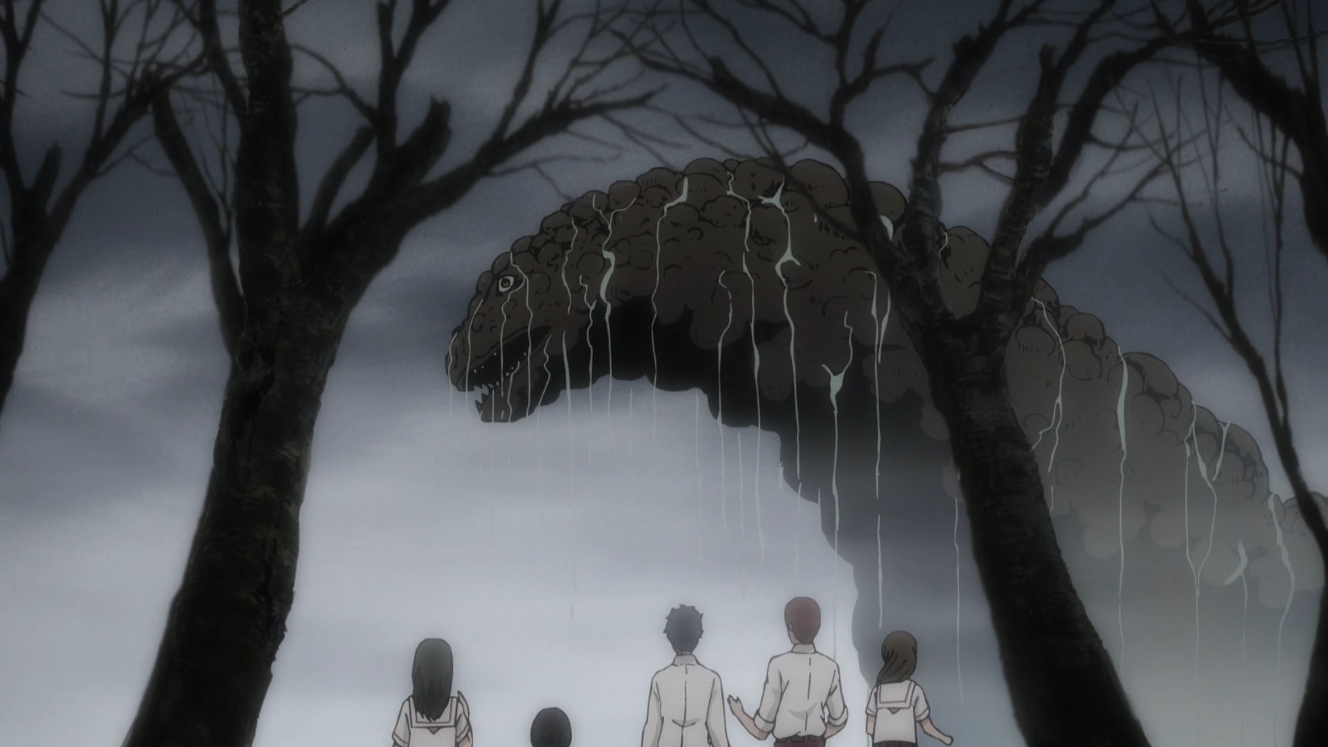 The first short story takes up more than two-thirds of the episode’s runtime, but it’s incredibly silly. For some reason, weird stuff just happens wherever he goes. At one point, what looks like Godzilla emerges from a lake. But even though the small town has turned into “Bizarro World,” the only people who seem to notice are the six kids in the Occult Club. Personally, I didn’t find this story all that enjoyable. It’s kinda hammy, but not in a very interesting way.