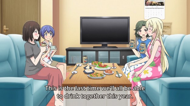 Afterwards, Hajime picks up a few beers on the way home. Once she’s all good and sloshed, she starts teasing Coconuts: