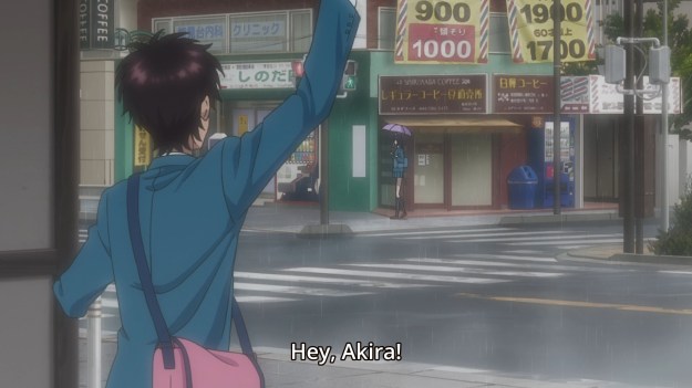 So when Haruka sees Akira later outside of school, she tries calling out to her former best friend. The latter can’t hear her over the rain, so Haruka has no choice but run out from cover and get herself wet. It’s really quite poignant if you think about it. Up until now, Haruka has shied away from “the rain,” or more importantly, Akira’s “rain.” She has shied away from approaching Akira because she didn’t know how to approach and deal with her depressed friend. And to be fair, she’s just a kid. She can’t bear the burden of her friend’s mental recovery on her own. But as a former best friend, Haruka still could’ve provided much-needed support. Unfortunately, she wanted to have it both ways: she wanted to reach out to Akira, but she also didn’t want to make herself uncomfortable. In a manner of speaking, she didn’t want to go out into Akira’s “rain” and get herself wet. But sometimes, you just have to tough it out. Maybe hearing about Kurata has finally light a fire in Haruka. If so, it’s about time.