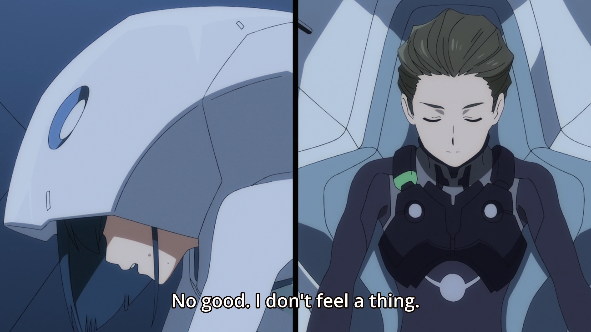 Later in the episode, Mitsuru has another nightmare. This one reveals that he was never strong enough to become a pilot in the first place. He had to risk undergoing the dangerous Elixir Injection if he wanted to go anywhere near a FranXX. He had also hoped to be Hiro’s partner. As far as we’ve seen — and much to the Internet’s chagrin — the FranXXs aren’t designed to accommodate same-sex partners. But who knows? Maybe the adults just need to be a little more open-minded when it comes to the kids’ experimentation. What’s important, however, is that Hiro and Mitsuru had made a promise to each other before the latter’s painful procedure. The young child risked death just to one day pilot a FranXX with his idol. We might even dare say that he loved Hiro back then. He suffered for Hiro. As a result, his world shattered when he returned from the Elixir Injection to find that Hiro had forgotten all about their promise.