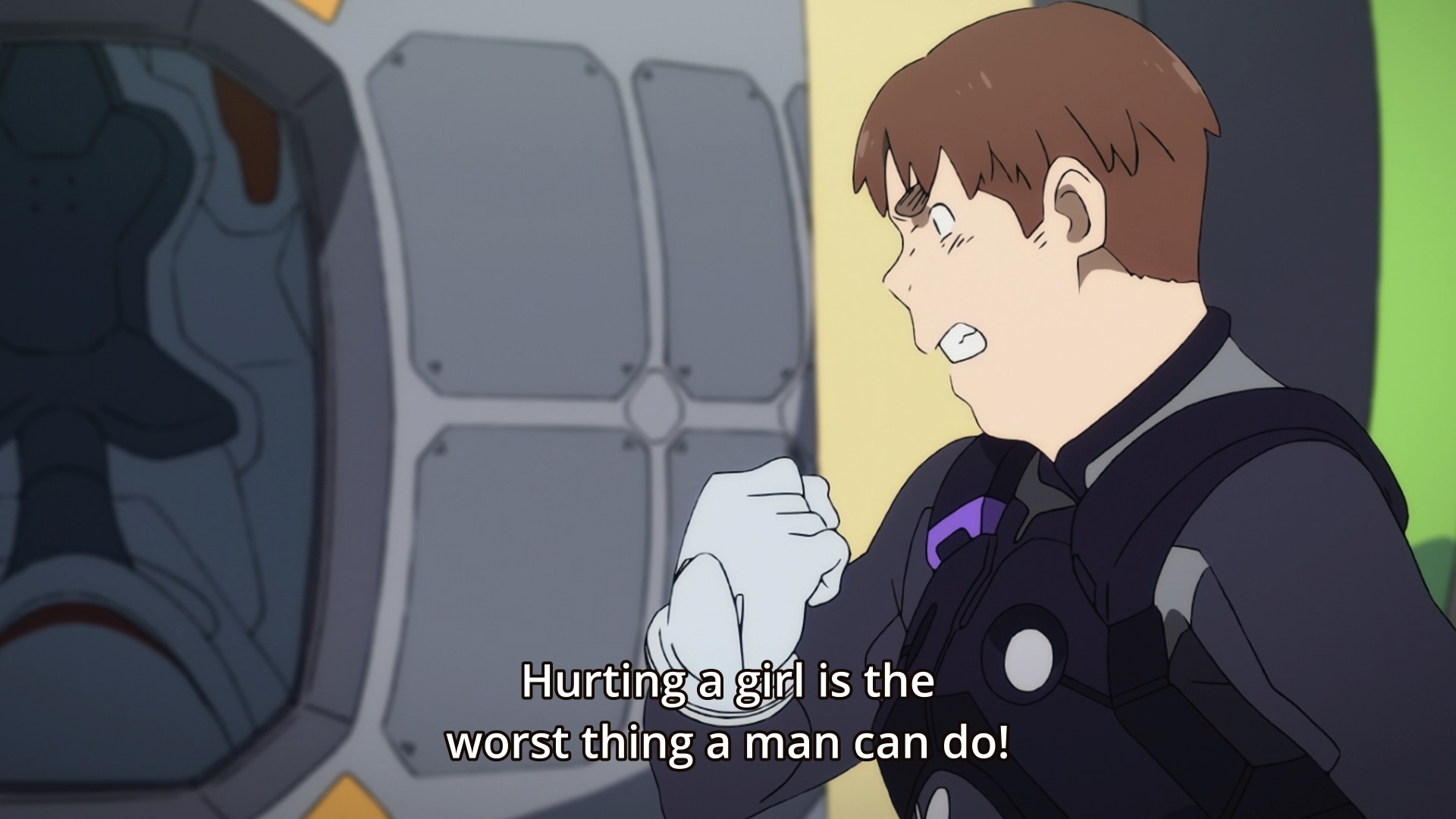 — We finally get to see another FranXX threaten to enter Stampede Mode. It looks kinda silly since Genista has that top hat. As an aside, people will probably be mad that the FranXX turns into a beast without the male component, but this completely disregards the fact that the FranXX is useless without the female component. The boys are helpless without their partners. This isn’t the case at all for the girls.