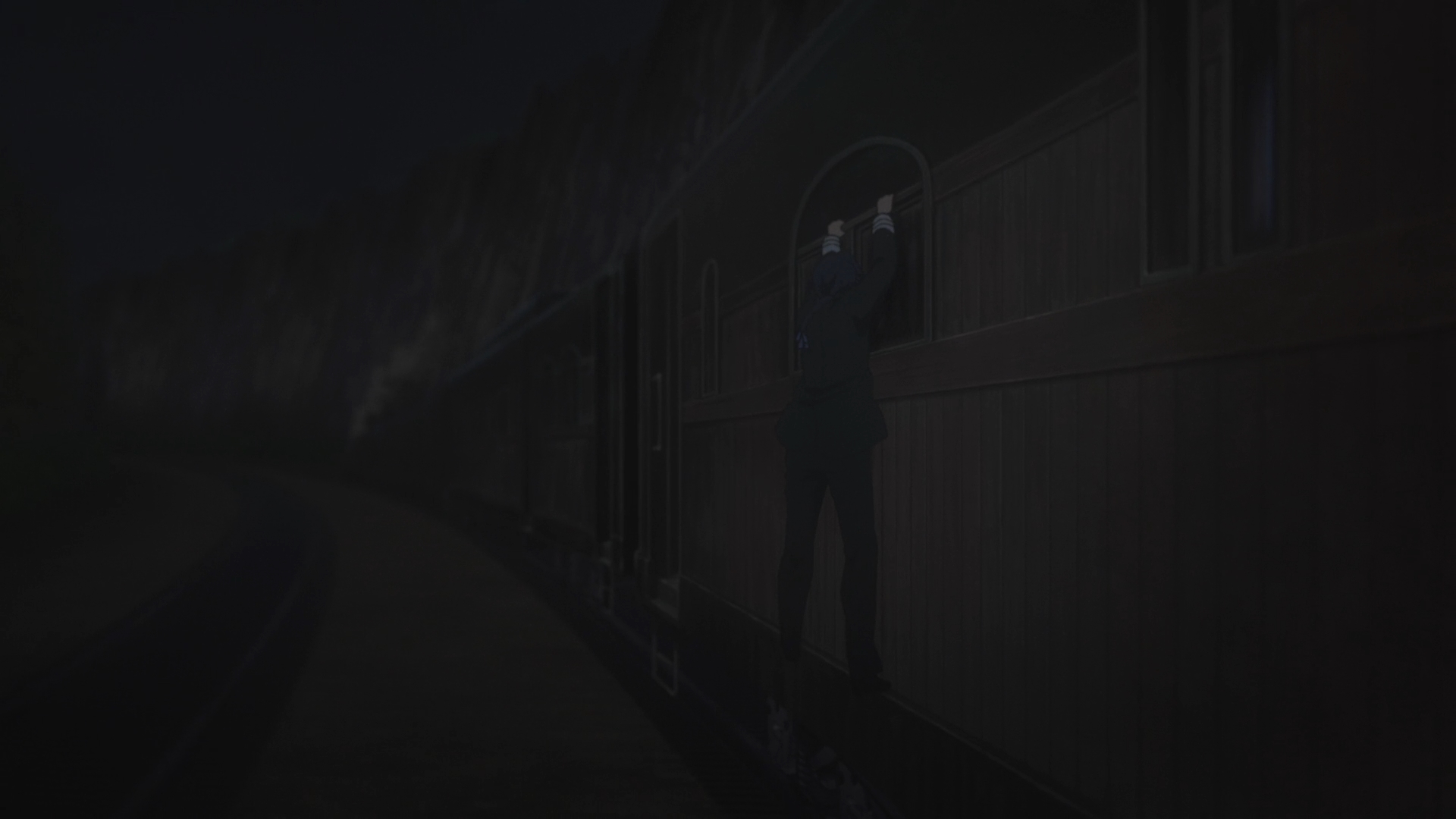— Now we have Dietfried sidling along the outside of a moving train car. Sigh.