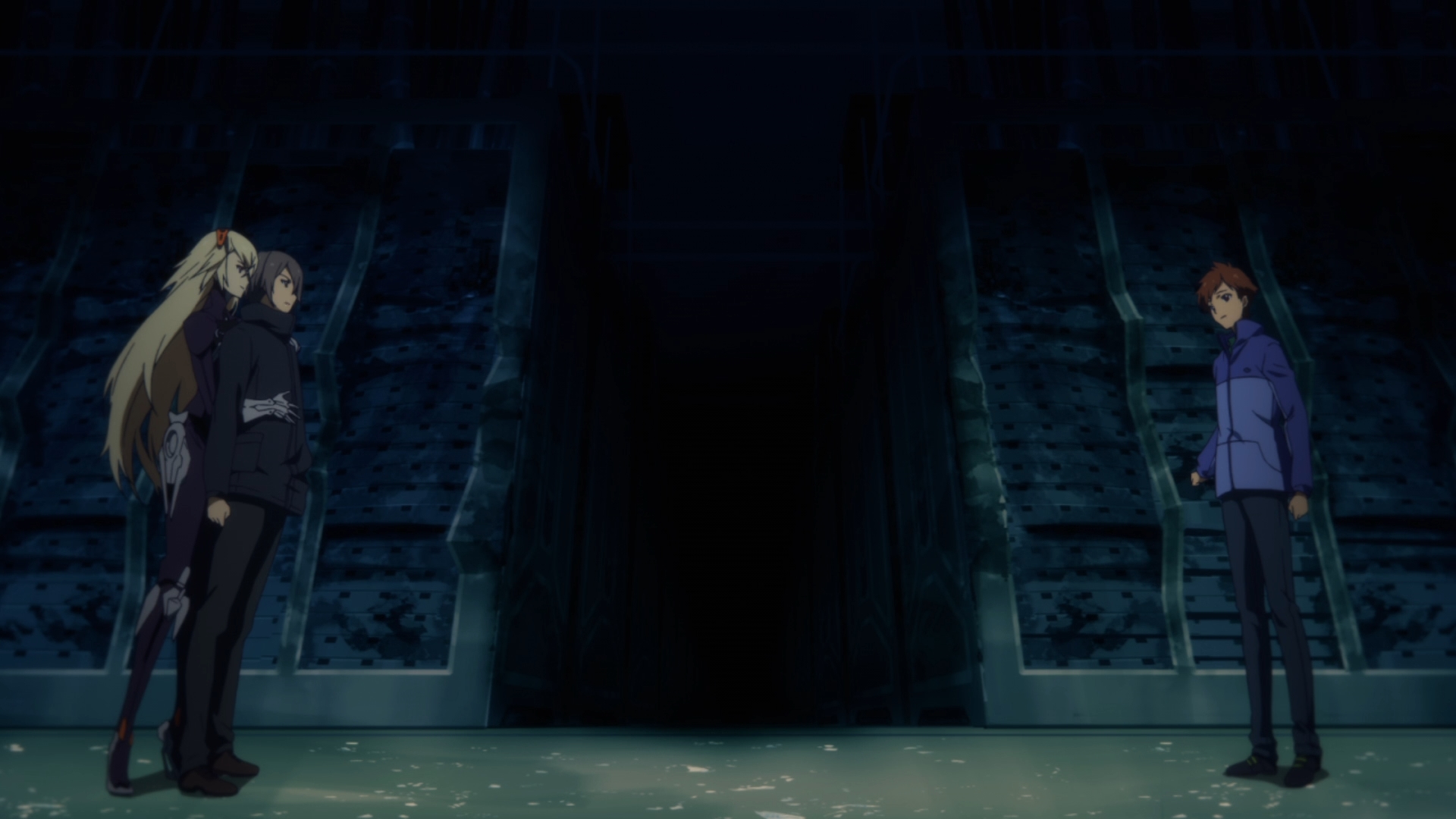 — The human vs hIE debate continues to rear its ugly head when Arato and Ryo come across a crying child hIE in the abandoned mall. Arato does what he can to help the kid, and this encounter makes him decide to head straight to the management center. He now wants to stop the zombie outbreak first and foremost, which really pisses Ryo off. Ryo only wants to save Yuka and that’s it: “If you see them as equal to humans, you don’t value humans enough!” It’s a matter of authenticity, I guess. The child can cry, but Ryo doesn’t think that the hIE’s emotions are authentic. He would argue that the child is crying because it’s being told to. It’s not crying because it actually understands fear and loss. Does Ryo have a point? Eh, I dunno. I don’t know enough about how the Higgins AI operates. Who’s to say that some small instance of Higgins — the instance that is in control of this child hIE — isn’t actually feeling the authentic desire to cry right now? Sure, Ginga said otherwise in last week’s episode, but can we really trust his word?