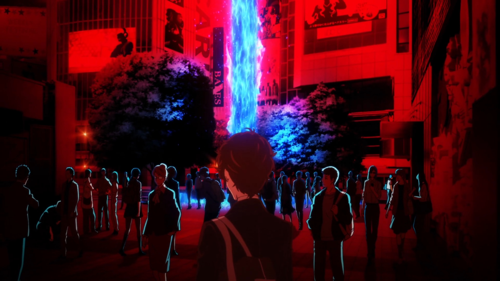 This scene is another example of what I’m talking about. Ren notices a strange new app on his phone, then all of a sudden, the world freezes around him and turns a bloody crimson red. A huge flame appears out of nowhere… then everything returns to normal. The main character isn’t even phased. Odd, isn’t it? And if you were new to the story, you might even say that the narrative so far is a bit confusing.
