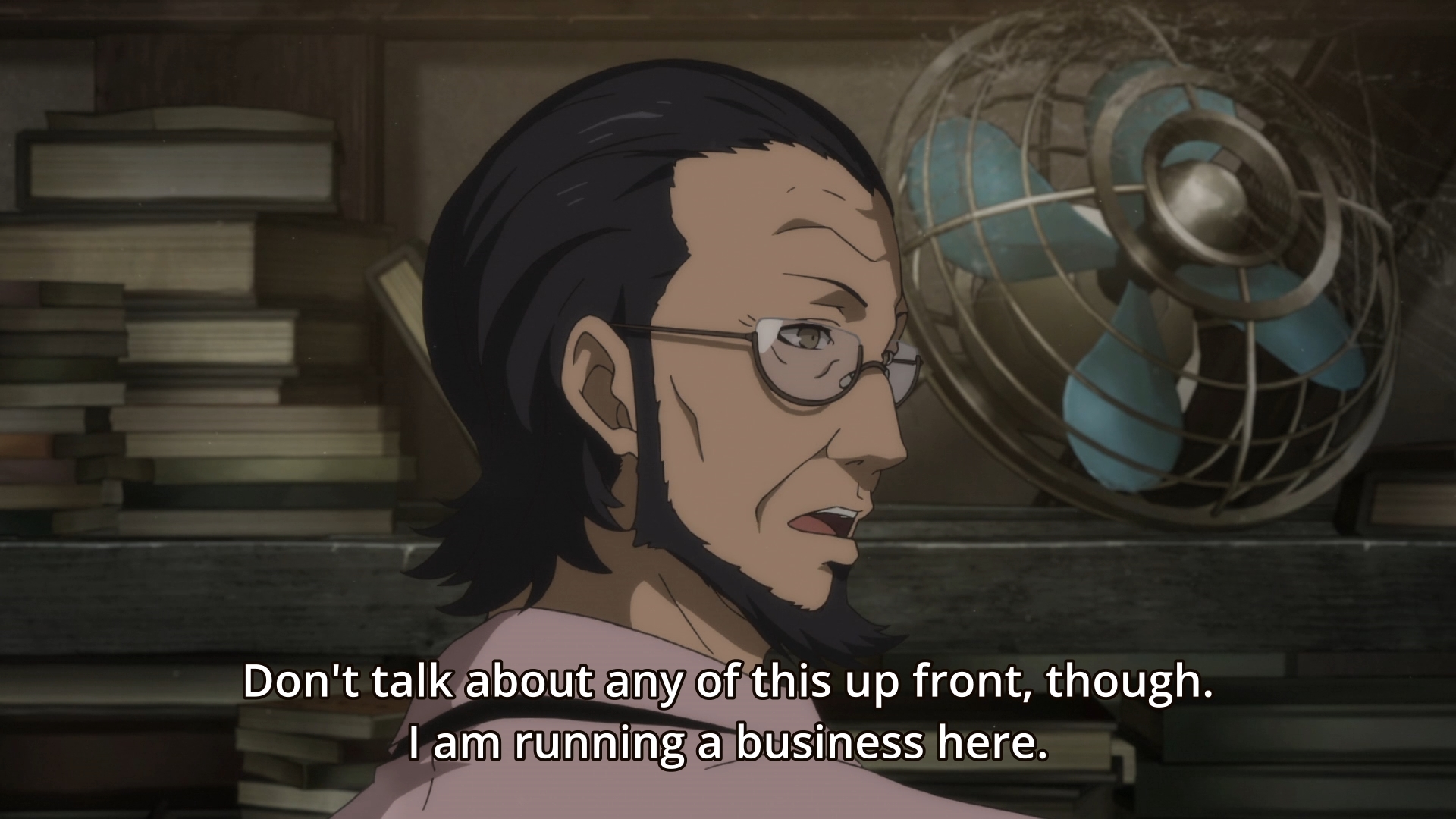 Anime Sojiro seems a whole lot nicer and softer than game Sojiro. They share the same words, but it’s all about the tone and delivery. I thought game Sojiro was kind of an ass, honestly. Early on, anyways.