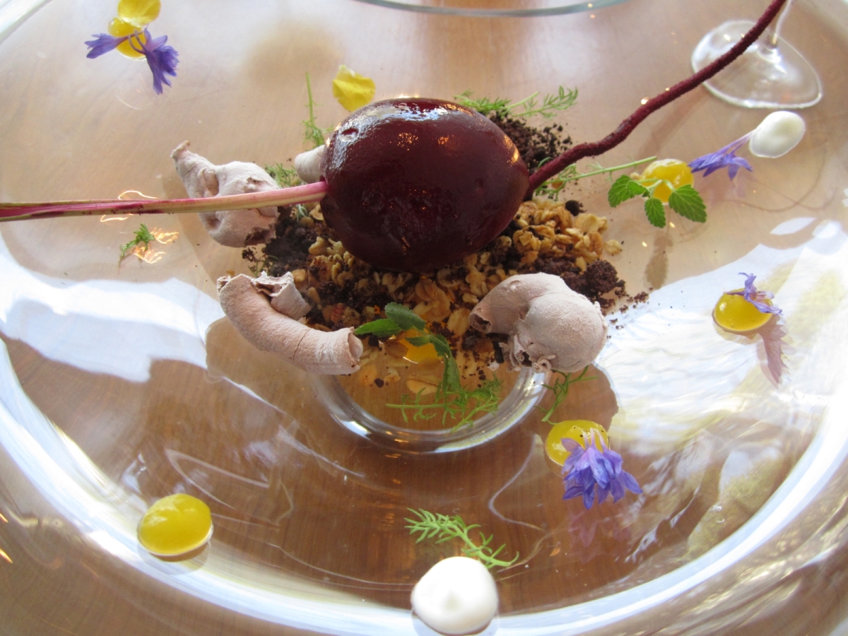 On a more fun topic, I really dig that pear in the snow and the chocolate sorbet. Those two look sweet and beautiful. And aubergine? Can’t they just call it eggplant? I thought it was some kind of fancy Italian or French chocolate or whatever at first, but nope. It’s just eggplant.