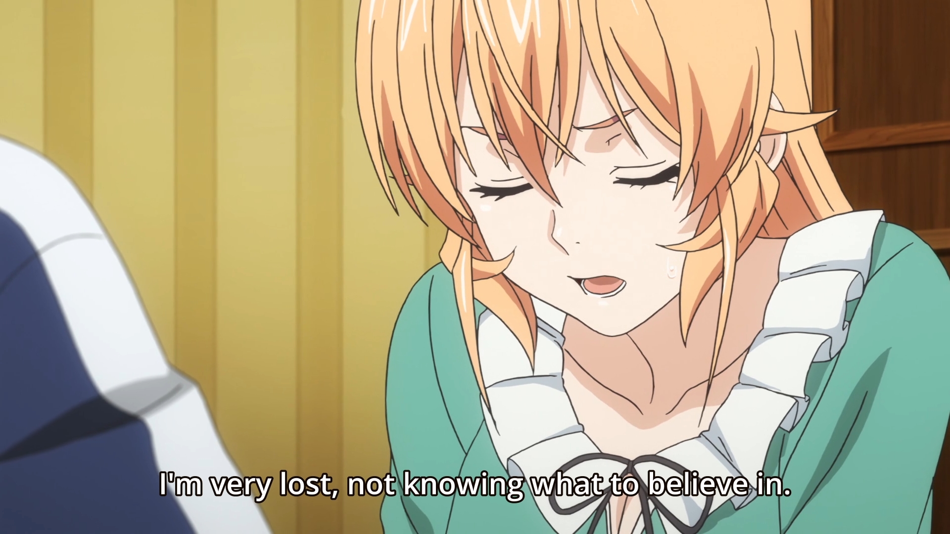 Looks pretty simple, huh? Not only that, he used cheap eggs that he had bought from a supermarket. Nevertheless, Erina is blown away. Not only does the dish have mind-blowing flavor, she can’t even begin to understand how Yukihira managed to dip an egg in tempura batter, deep fry it, and still keep the yolk raw and runny. The main character then reveals his one simple trick: he froze the egg. And because he froze the egg, this served to intensify the flavor of the yolk. That’s why he used cheap supermarket eggs… higher quality eggs would’ve ended up being too rich. Yeah, I really doubt that. I also think there’s too much rice in that bowl for one small tempura egg, but whatever. It’s not a big deal. Yukihira then confesses that he’s often not 100% certain about a lot of his dishes. Nevertheless, what matters is that he has fun. This thus inspires Erina to regain her love of food, so the very next day, she decides to lead the charge and help Polar Star Dormitory overcome the Advancement Exams. Great… But this whole brouhaha with Azami is going to last forever, isn’t it? It’s going to extend into a fourth and possibly even a fifth season, huh? I feel exhausted just thinking about it.