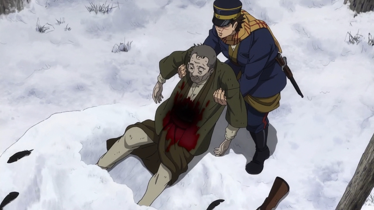 — Sugimoto then has a nightmare where he has to relive his best friend Toraji death in the war. The latter left behind a child and a poor widow that is slowly going blind. Sugimoto feels as though he has an obligation to help his best friend’s family. Toraji was also responsible for pushing our hero towards gold panning.