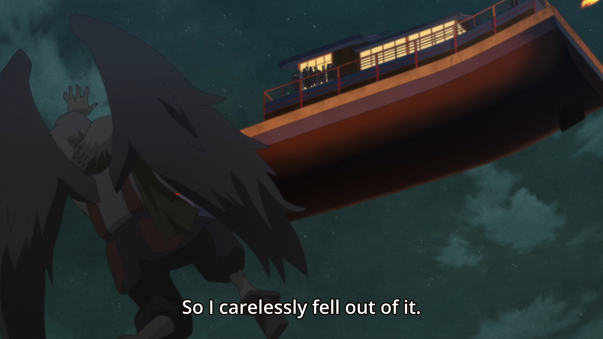— Later that night, she finds an unconscious old man outside the empty eatery. I bet it’s the tengu elder. I bet she’s going to feed him!