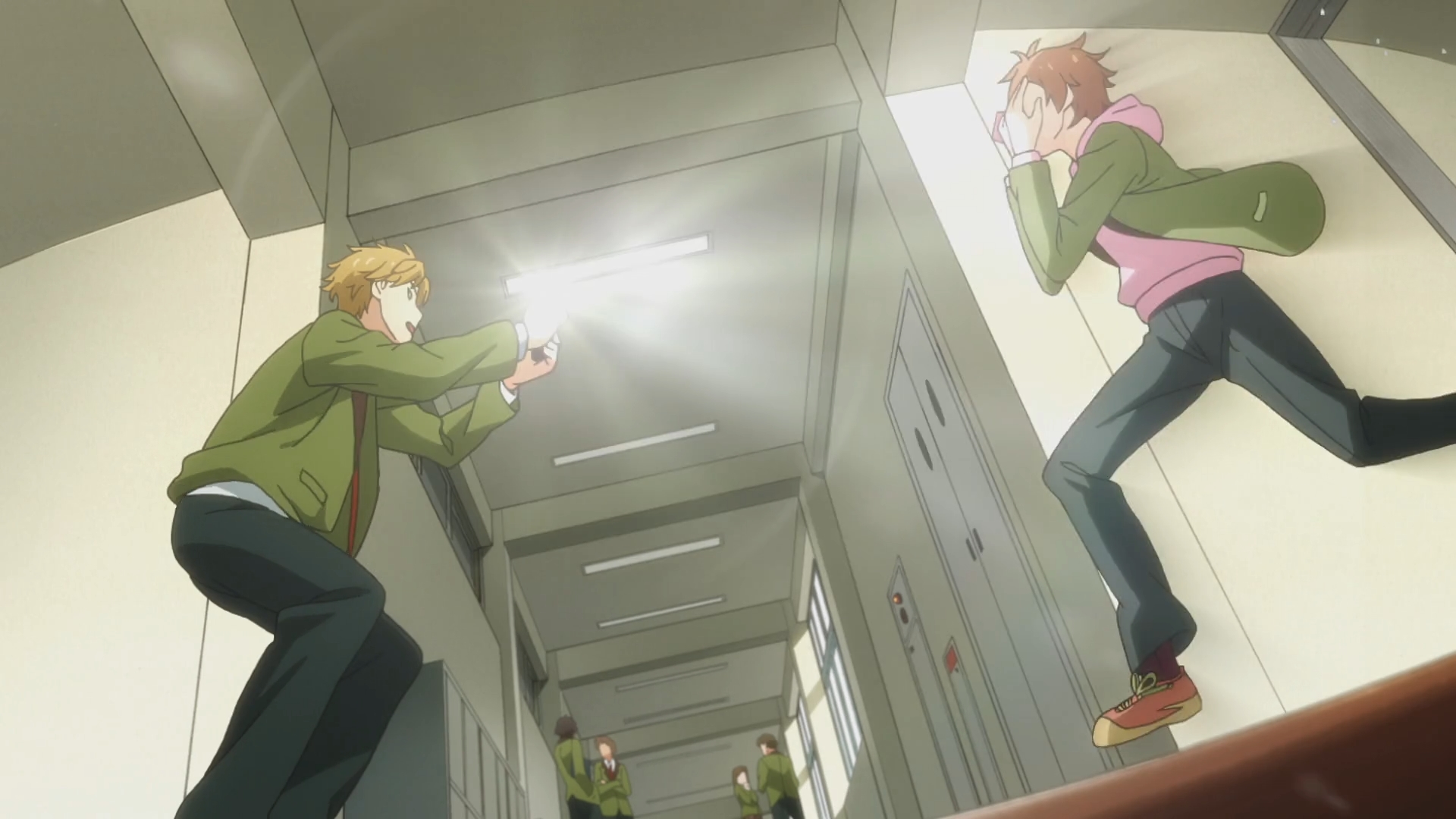 — We are introduced to Hajime, a.k.a. Pin-senpai. He’s the head of the Photography Club and also a bit of a creep. These two things are not necessarily related. Anyways, he supposedly has the ability to discern a girl’s cup size just by staring at them, but that’s probably bullshit. Guys think they know, but they don’t.