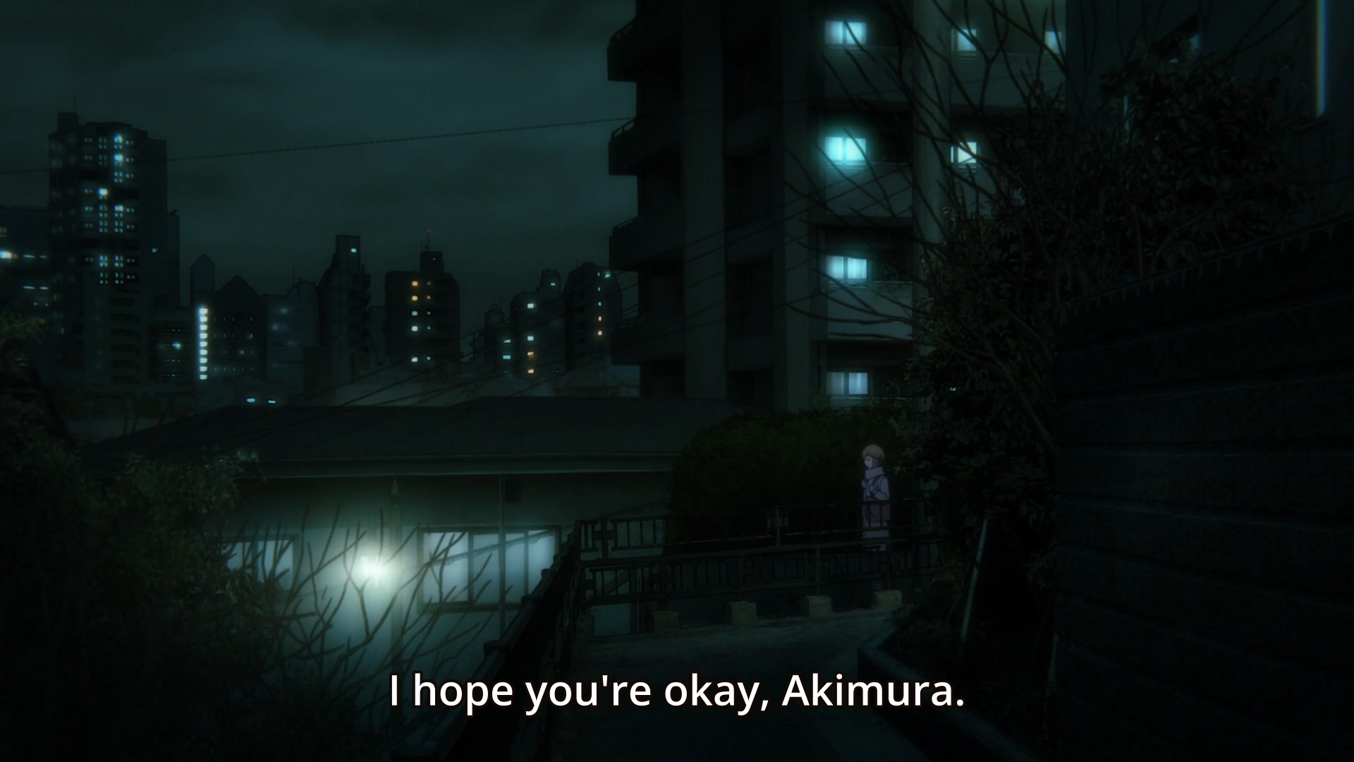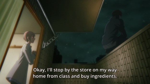 Tsukasa later slips away unnoticed… except by Anzai, of course. Nothing she does goes unnoticed by him. As a result, he later pays her a visit by creepily staring at her from the balcony again.