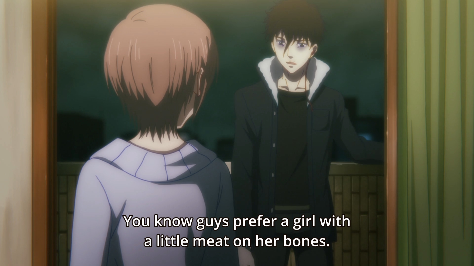 Upon their first meetings on her balcony, Tsukasa would be wary of Anzai and keep him behind a window (which could also serve as a smart nod to the idea that vampires cannot enter a person’s home unless invited). However as she learns that he does have her best interest in mind, she removes the glass barrier between them. Anzai is wary of stepping into her home because he himself doesn’t want to risk anything that may make him a slave to his instincts. It would be here that we can delve into some interesting characterization. Anzai believes coexistence between human and vampire is futile and that vampires must discipline themselves to never seek human desires like social comfort and love, something he has lived his whole life doing. However, what he doesn’t realize is that he needs these human comforts, subconsciously using his growing bond with Tsukasa to satisfy those needs (nailing the chemistry between these two would be very important obviously). This would make the tragedy of all vampires that more salient as we see how dangerous his vampire nature is and how difficult this makes things for him. On a instinctual level, Tsukasa is nothing but an object to lust for and the more the narrative established the dichotomous nature of his genuine emotions for Tsukasa vs that of his Id, the more sympathetic us as the audience would become of Anzai’s internal struggle. It would have made that whole masturbation scene hit harder as both unsettling but sympathetic because he truly is a slave to his vampiric instincts. He would be right: vampires cannot be with humans if their blood makes them lose their shit like this. Is Anzai’s love for Tsukasa just an obsession influenced by his vampiric instincts (demonstrating by him sniffing her or looking at her with a desire to drink her blood) or is he truly falling in love with her? Similarly, Tsukasa’s character flaws would have us question whether or not her desire to throw out rationality and take the risk to be with Anzai is out of her desperation to not feel lonely or if she loves him; would anyone do for her? Establishing all this could have made for an affectionate relationship with a little bit of unhealthy twistedness narratives of this genre thrive off of; it would have added a layer of complexity and intrigue to their dynamic that would make their struggles a compelling watch.