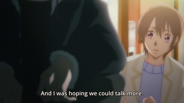Anyways, Anzai continues to regularly visit Tsukasa through her balcony. Why? Shrug. In fact, she keeps trying to offer him stuff. Want a kotatsu? Want some nabe? Why can’t we just talk? And yet, she won’t ask the simplest question: why is he even here?