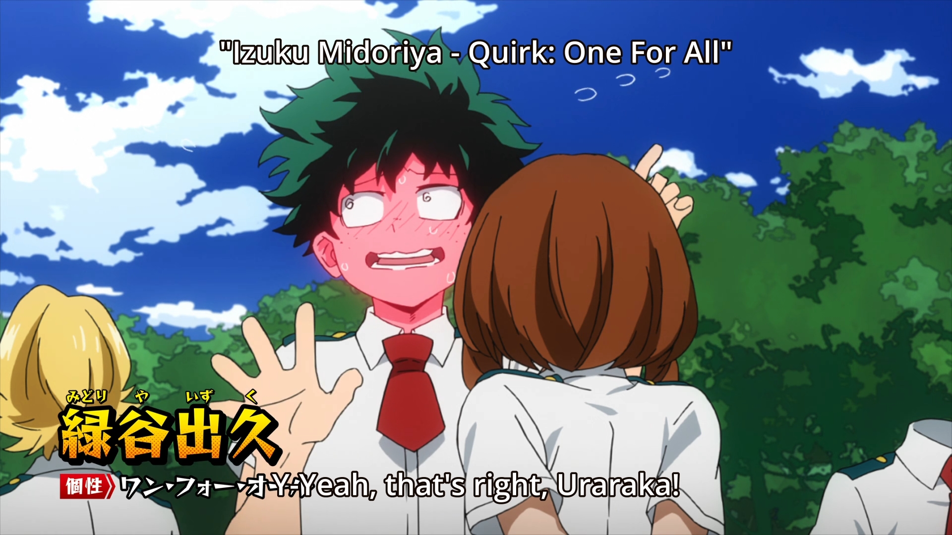 — Deku blushes when Uraraka gets close to him, then she starts blushing in return when she remembers that she might actually like him. Yep, that’s it. That’s all you going to get, folks. Come back in a bajillion episodes if you want to see if their relationship ever goes anywhere. That’s the curse of shounens. On the plus side, at least Deku isn’t pining for a girl who prefers his edgy best friend.