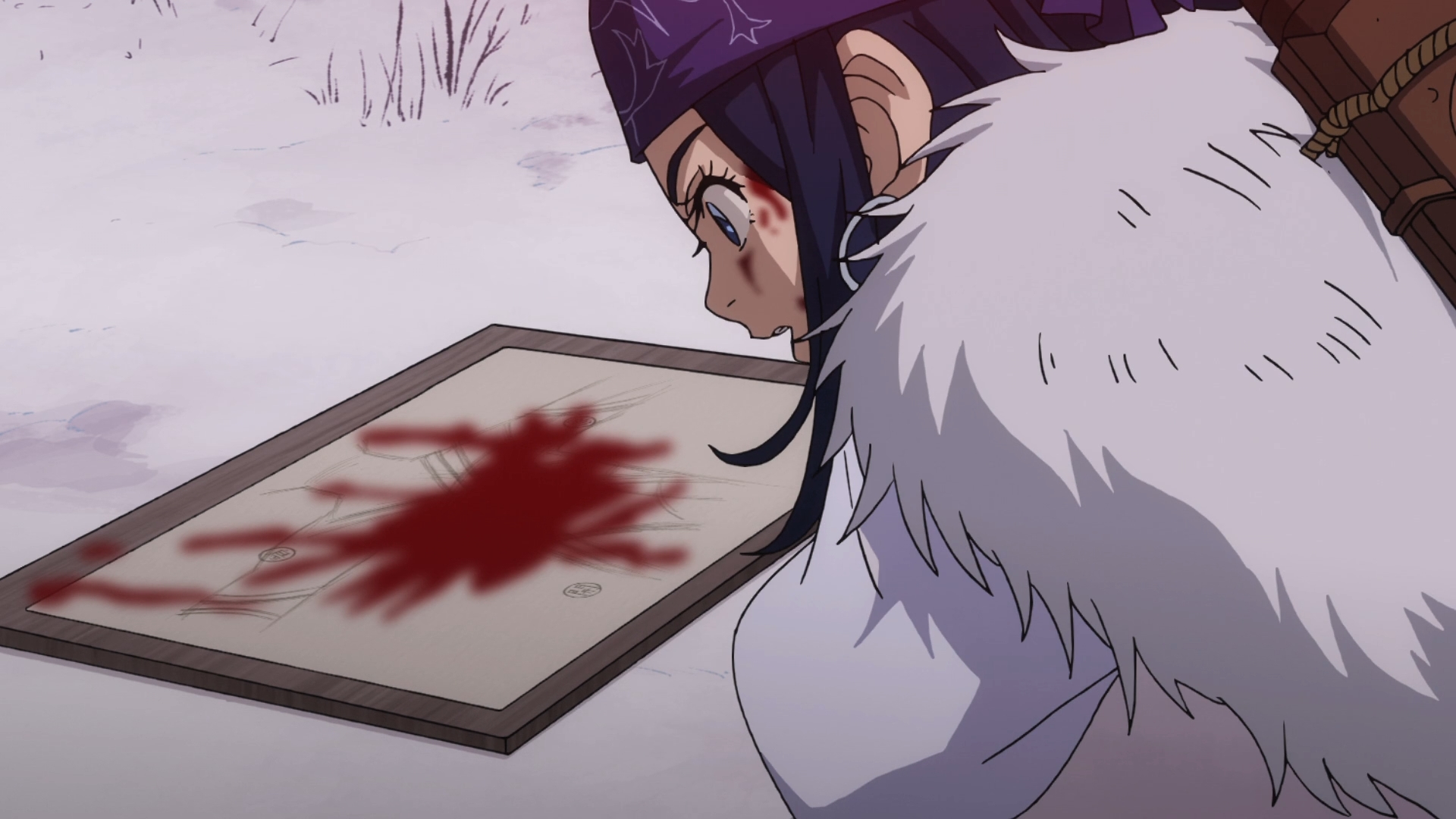 — Anyways, the prisoner bites it when someone suddenly snipes him out of nowhere. To make matters worse, his blood somehow gets all over Asirpa’s sketch. Whoops.