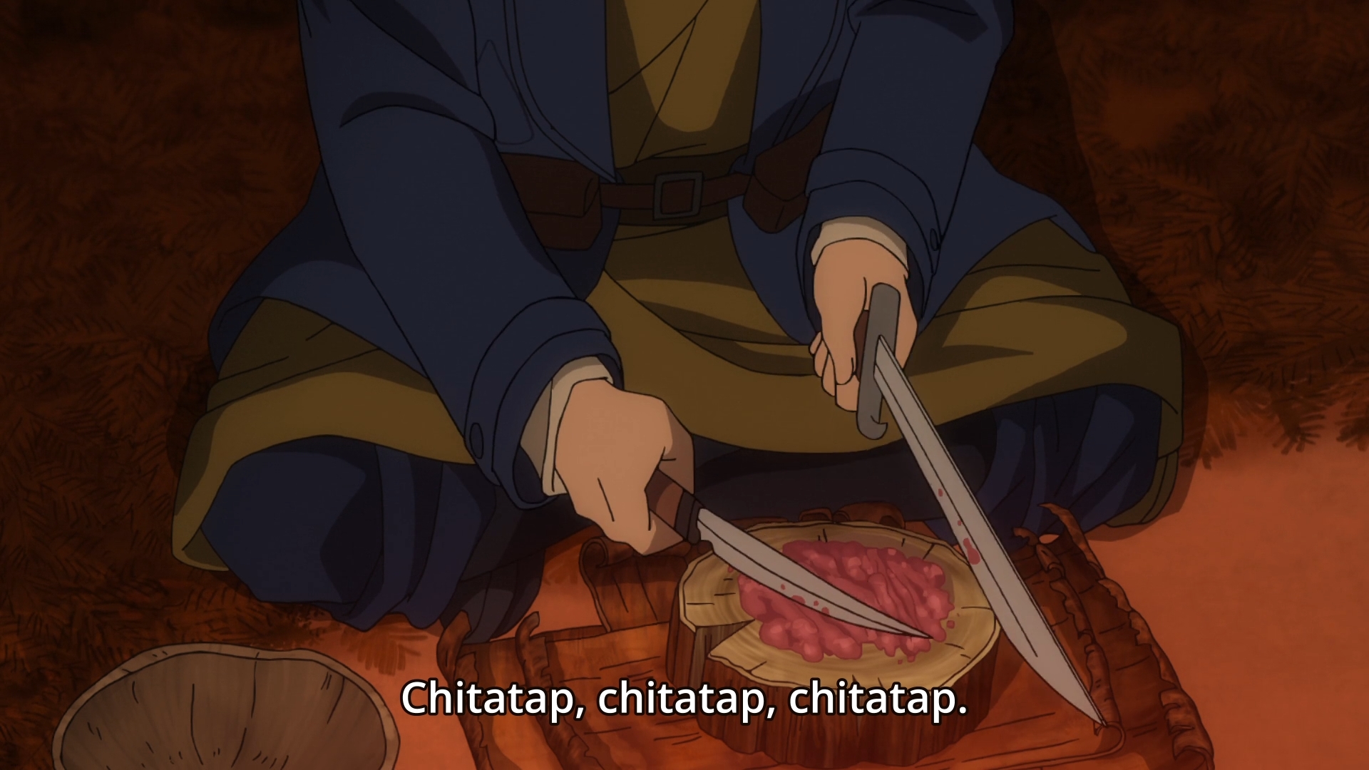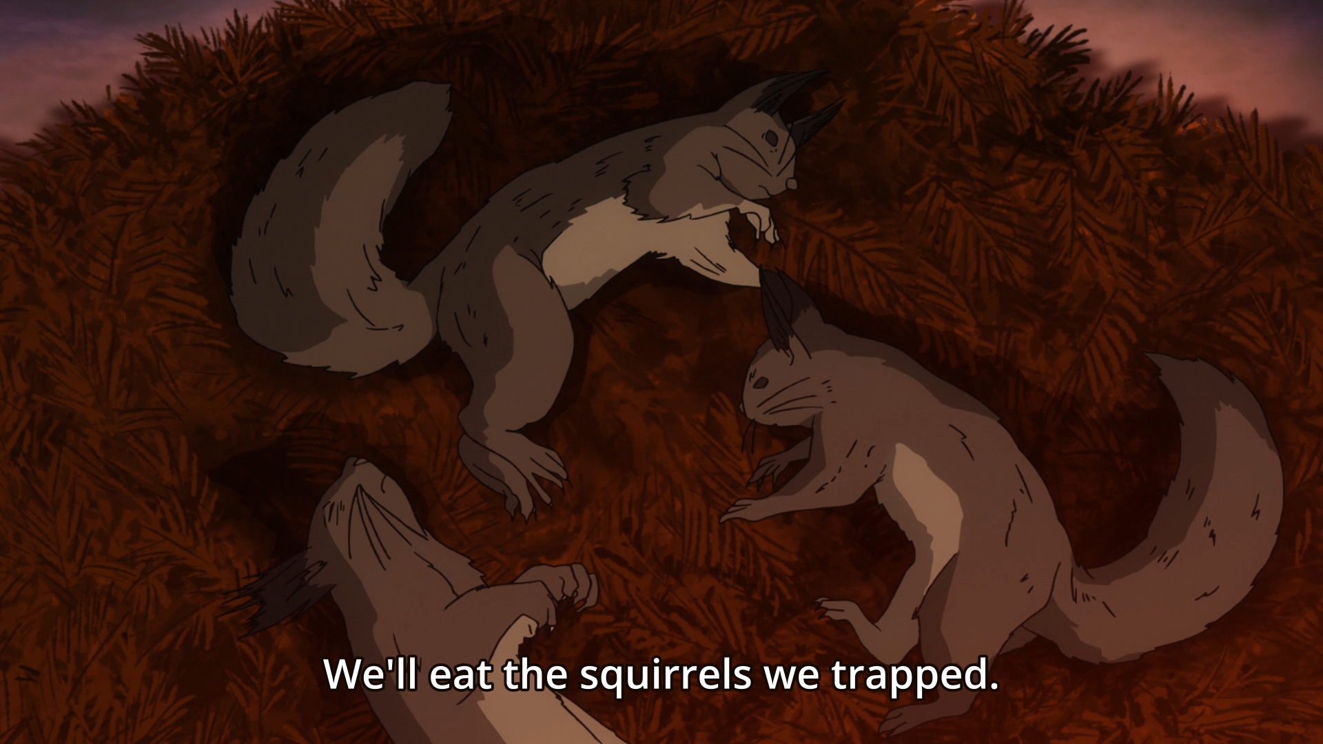 — And now, we get to Asirpa’s Surviving the Wilderness TV special. What’s on the menu tonight? Squirrels, of course! Tune in today as she teaches you how to skin, gut and cook a squirrel! We’re making chitatap, an Ainu delicacy! Don’t worry, it’s more than just steamed ham!
