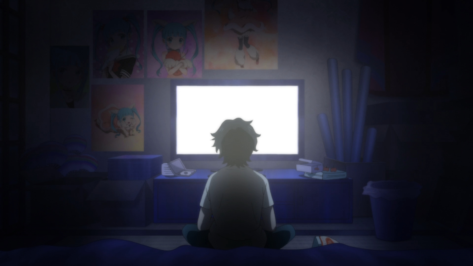 — Nijimi, the girl that we had seen at the end of last week’s episode, is in fact an idol. In fact, her group takes after dogs. This is gross, and this is even grosser. In any case, we’re also being introduced to one of her fanatical followers. Naoto is your typical shut-in, but he’s also short on his rent. How this guy will figure into the bigger picture, however, is currently unknown.