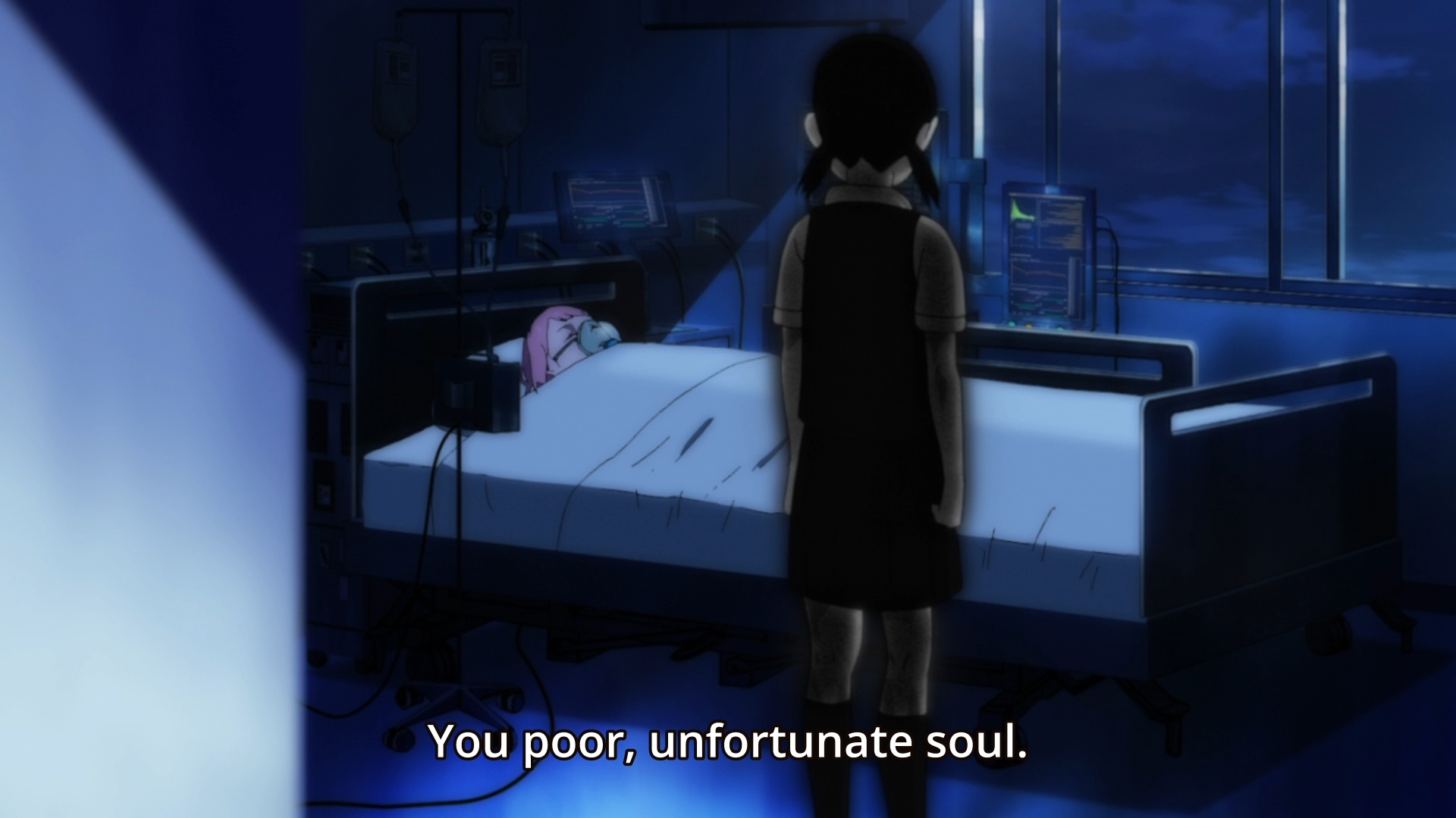 — As Aya and Tsuyuno leave the hospital grounds, the former expresses happiness at the fact that she now has a friend. That’s true. She’s no longer lonely. Still, any sort of happiness is short-lived in this sort of story, because both girls have just gotten themselves into a bigger mess. Not only is Sarina up and about, Nijimi is a ticking time bomb, and Kaname’s not going to give up on Aya that easily. Plus, what was even the point of Naoto, that crazy Nijimi fan? He has to have a role to play since he took up way too much time in this episode just to be a nobody.