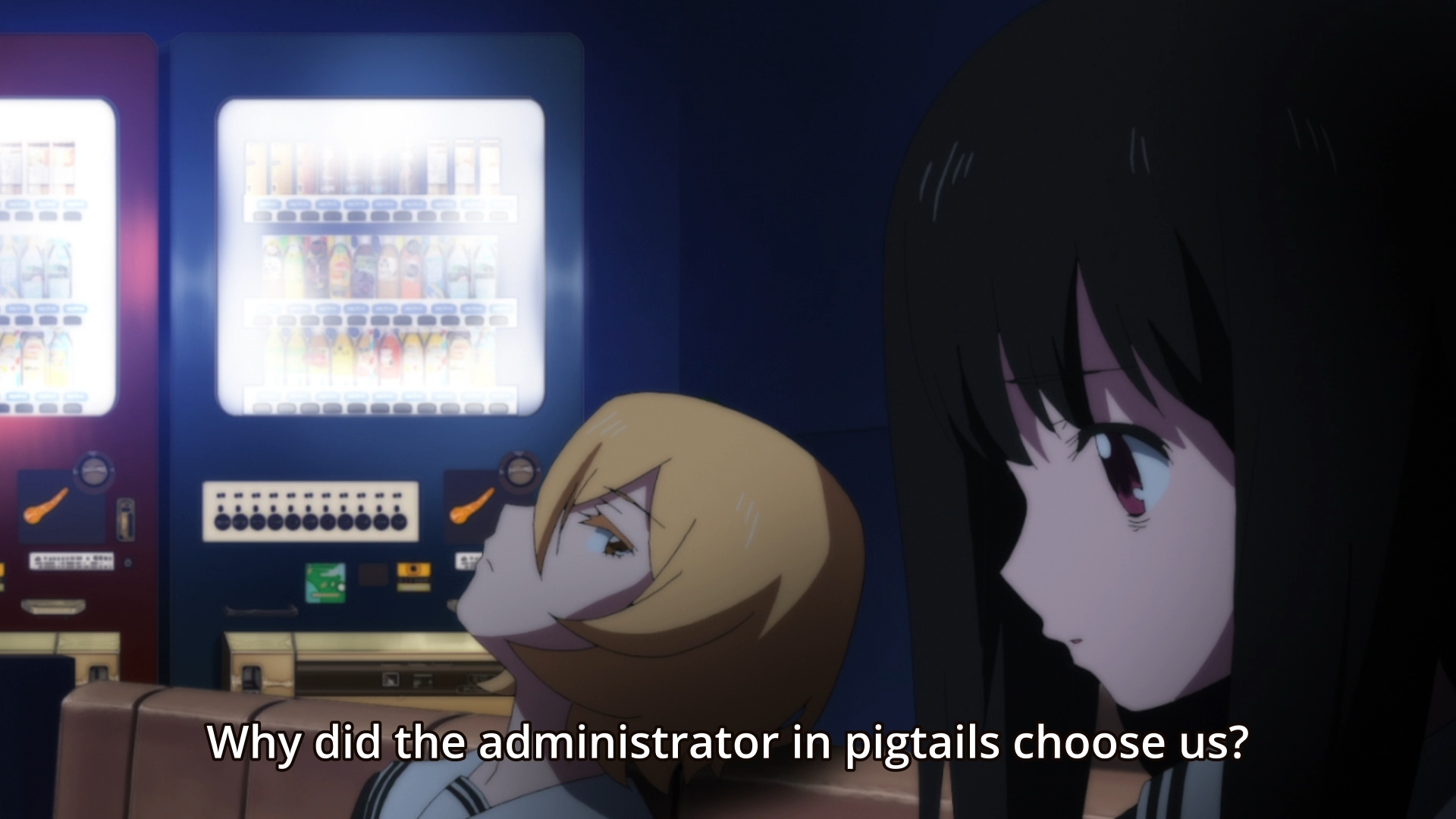 — Unfortunately, Nijimi’s handlers eventually locate her, so the rest of the conversation cannot continue. Nevertheless, Aya and Tsuyuno are invited to Nijimi’s apartment later that night.
