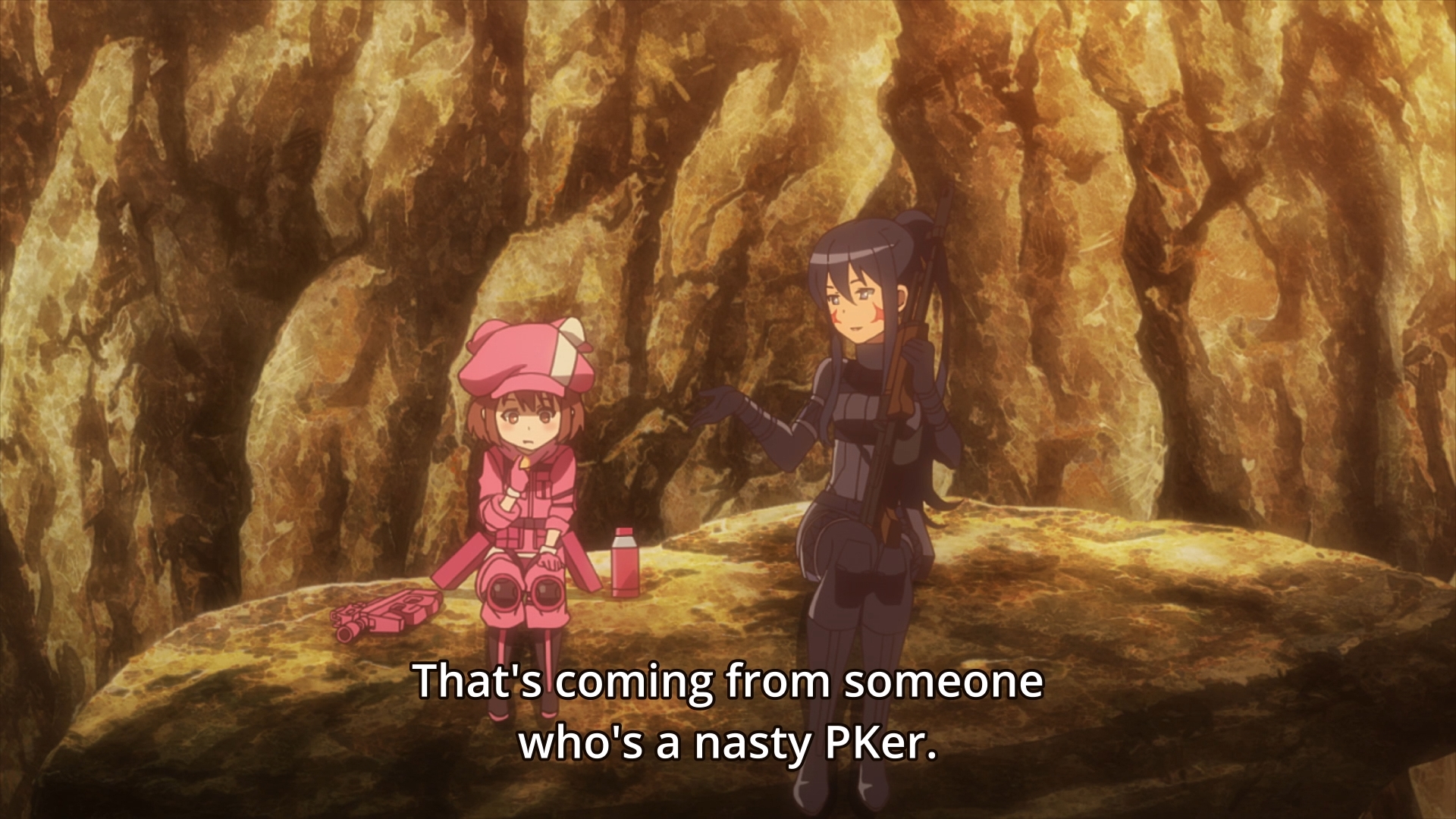 After three whole episodes, Sword Art Online Alternative: Gun Gale Online still lacks a compelling hook. Like, what’s the endgame? What are our characters hoping to achieve beyond just winning a random tournament? Karen’s desire to become a stronger person in real life is also too nebulous of a goal. I’m not saying that the show needs some big, bad villain like the Kirito-focused arcs, but it needs something to work towards.