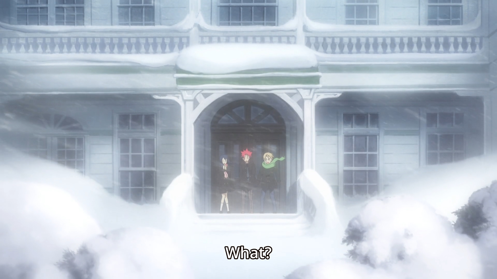 Our heroes are forced to make a noodle dish without any noodles. They have three hours to source their own ingredients in the middle of a snowstorm. Meanwhile, the evil instructor smirks devilishly. Man, I just wish someone from the rebel faction would actually rebel. Oh, you don’t have enough ingredients for your students to even take this exam? Well, that must mean this is a shitty school beneath my standards. See ya. But that would never happen, so I just have to ignore these painfully contrived conflicts.