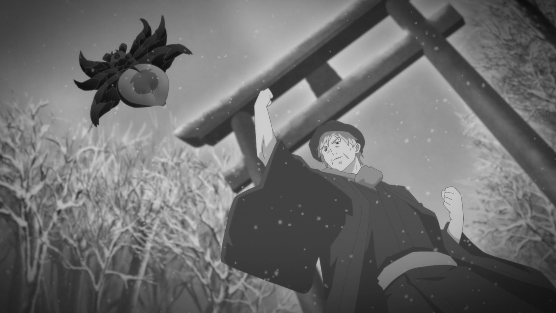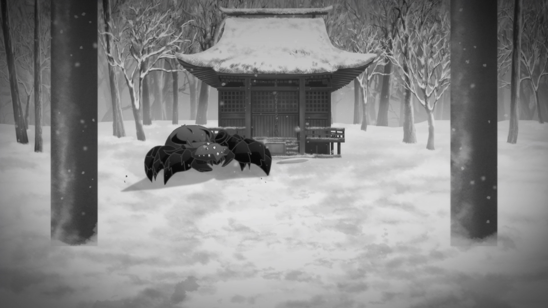 — Y’see, Akatsuki and Suzuran used to live in the human realm, a.k.a the apparent realm. Look at that. Just look at that cartoonish-looking spider lurking around a shrine.