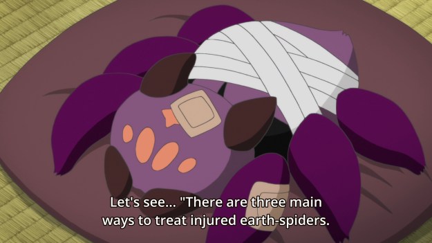 — Aoi wants to pay Suzuran a visit, but after she climbs the many steps of the inn, she finds herself witnessing a sibling squabble… between spiders… yep.