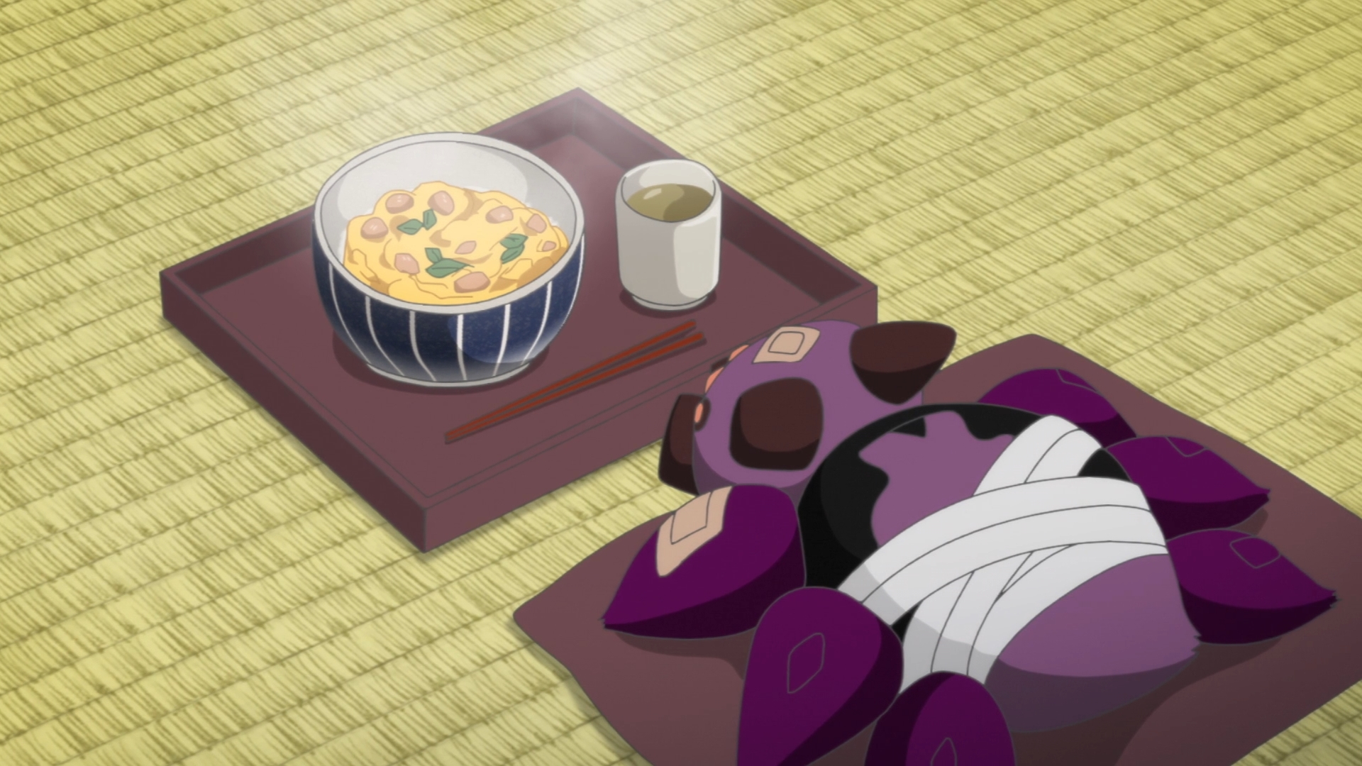 — I like how the bug-spider was even given chopsticks to use with his oyakodon. Apparently, Aoi has another special power up her sleeve: her food has the ability to restore an ayakashi’s spiritual power. Convenient!