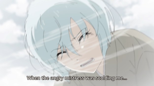— Anyways, she used to live as a servant for a mean, old mistress. One day, she accidentally broke a precious plate, so she got multiple hits from a fan. Look at those action lines. That’s the brutal punishment of a fan!