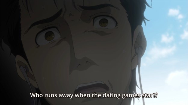 — Apparently, Rintaro failed to shut off the app during one of his many gokkun. Amadeus reveals to the audience that he bails as soon as “the dating games start.” This is supposed to be humorous, but all I can think is that this guy really, really isn’t ready for this.