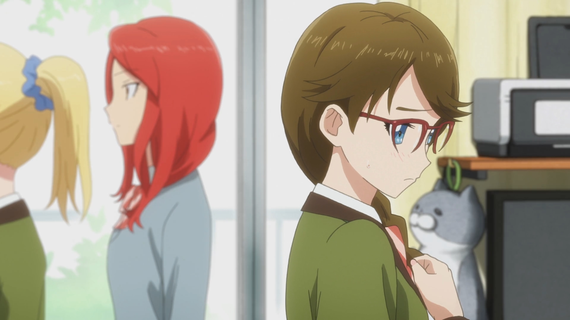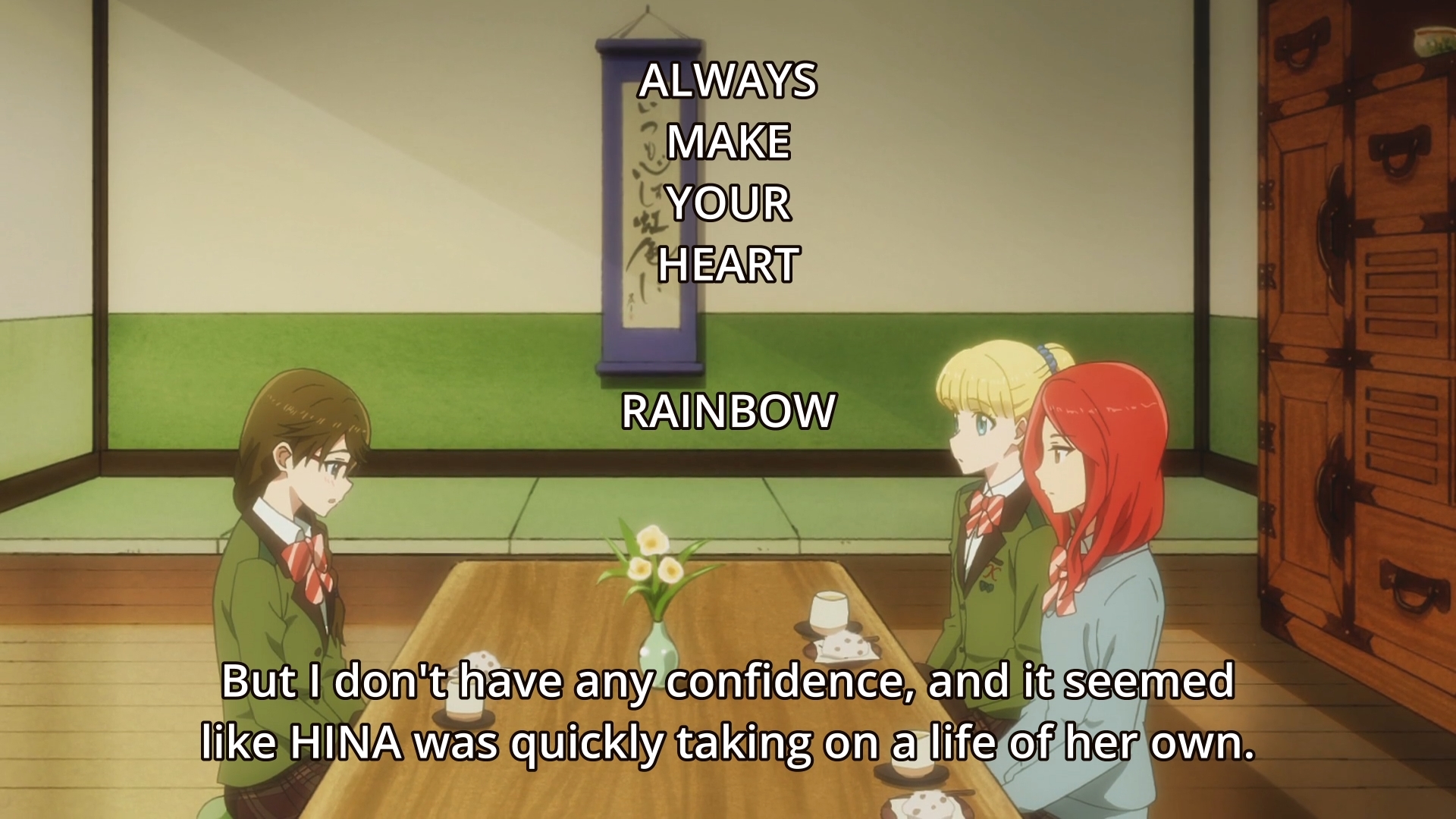 — HINA’s backstory is pretty basic: Hinako filled in one day for a girl who couldn’t make it to a shoot, and since then, she had hoped that modeling would give her more confidence and make her less shy. But instead, she simply developed two distinct personas instead. It’s odd how that works, huh? I’d argue that she doesn’t want her primary persona, i.e. Hinako, to become bolder at all. Rather, her introvertedness acts as a security blanket. The fact that her relationship with Hajime remains at a standstill is also a security blanket. Look, who knows what will happen when she finally summons the courage and confesses everything to Hajime? That uncertainty is scary. So instead, she can remain secure in the fact that the guy is so obsessed with HINA that he would never fall for anyone else. As a result, she gets to take her sweet time stepping out of her comfort zone. Maybe she never really has to. Hinako assures the girls that she’ll save the best for last, but this is just procrastination pure and simple. She’s just as frightened as Hajime about confessing her love.