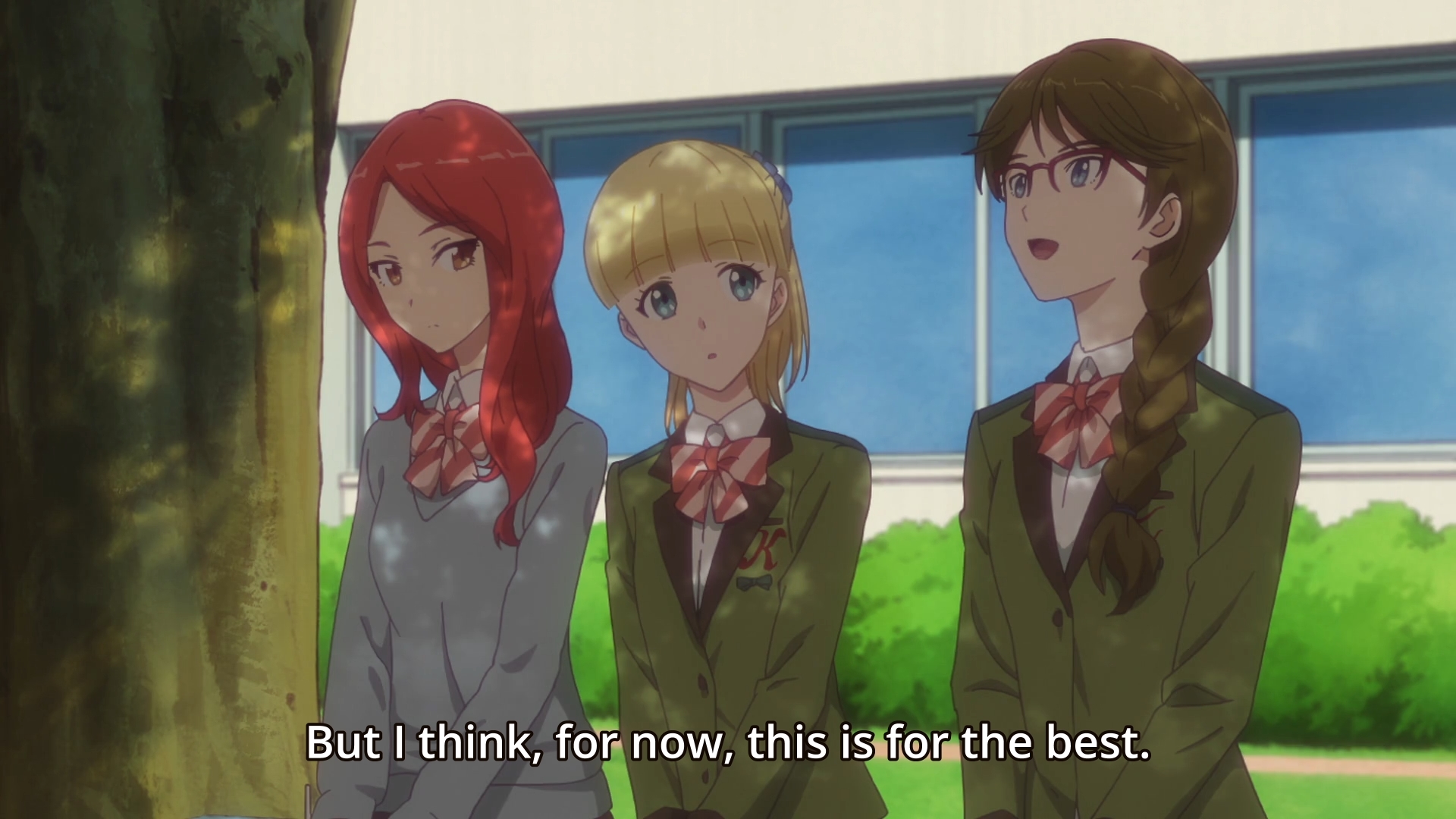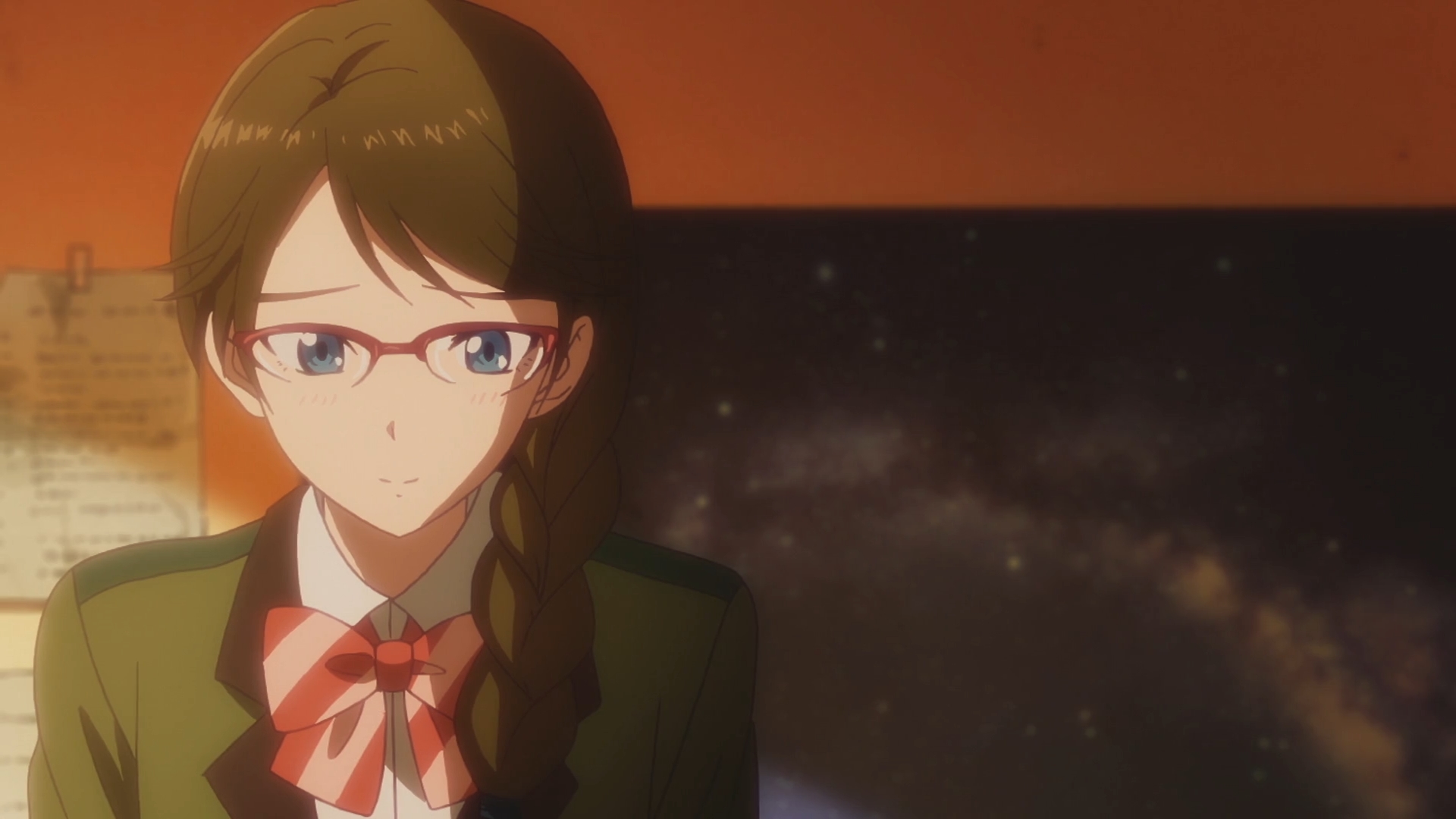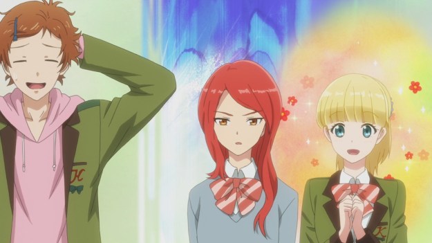 — The moment of truth comes, and Hajime is predictably too busy fighting his own nerves to realize that Hinako is standing right in front of him. Eventually, he takes her advice from earlier and manages to calm himself down, but he still remains clueless. Dude, her face… her voice! If he’s such a huge fan of HINA, he must have studied her looks thoroughly, right? So how can he not realize that Superman and Clark Kent have the same goddamn face whether or not he’s wearing glasses?! Again, I wish the show had bothered to subvert yet another tired trope, but alas…