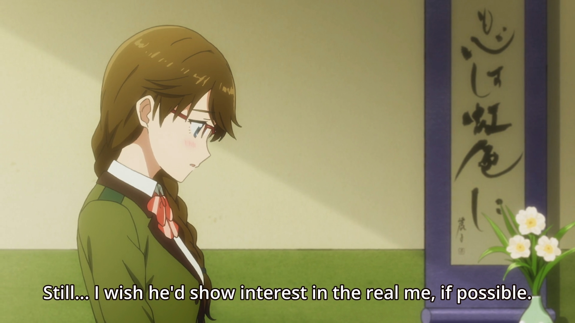 Teresa isn’t wrong when she says that HINA is a part of the real Hinako, but her advice is also a little too simple and reductionist. Truthfully, Hajime doesn’t know HINA all that well either. In fact, his love for her is shallow. I didn’t mean for the downer analysis, but I can’t really root for this guy. In the end, he thanks Hinako for her advice, but… eh… maybe their relationship will develop more in later episodes, but for now, he doesn’t deserve his childhood friend’s love at all. I’m sorry, but defending her once from a mean dog isn’t going to magically change my perception of him. I agree with Alec in that he’s just a clueless, perverted doofus. Anyways…